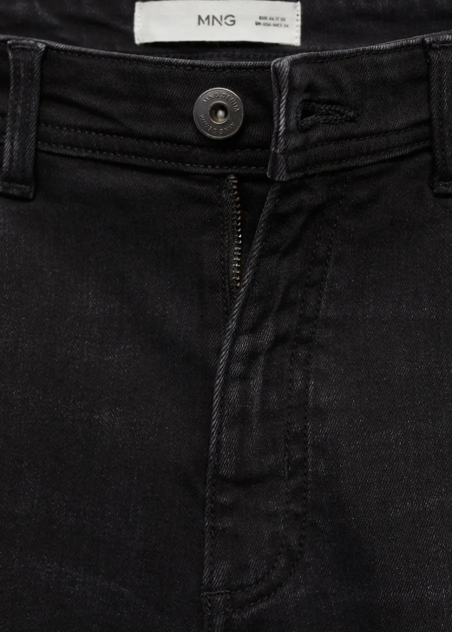 OpisSlim-fit. Tkanina bawełniana w dżinsowym stylu. Szlufki na pasek. Zapięcie na suwak i guzik. Dwie kieszenie boczn…