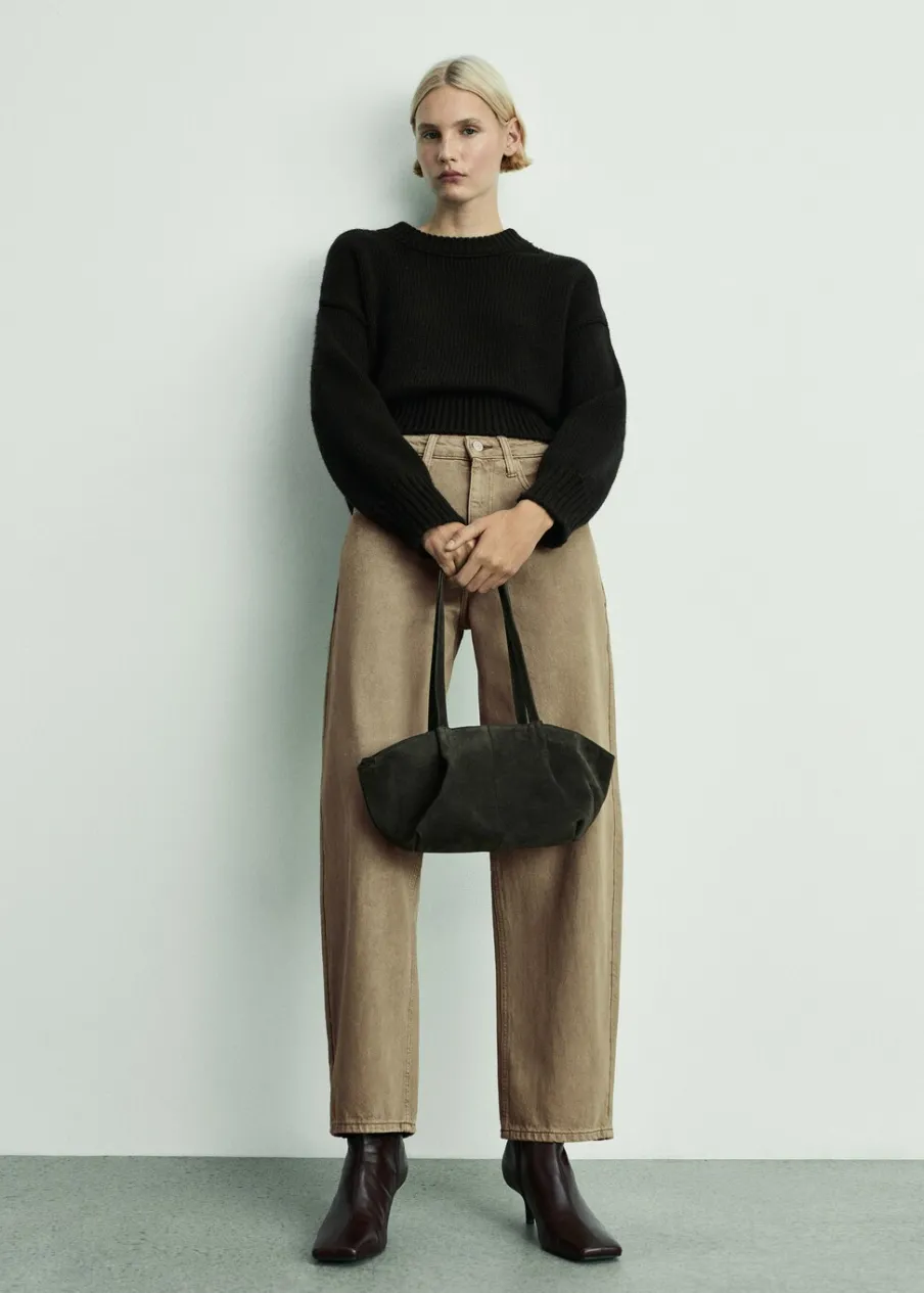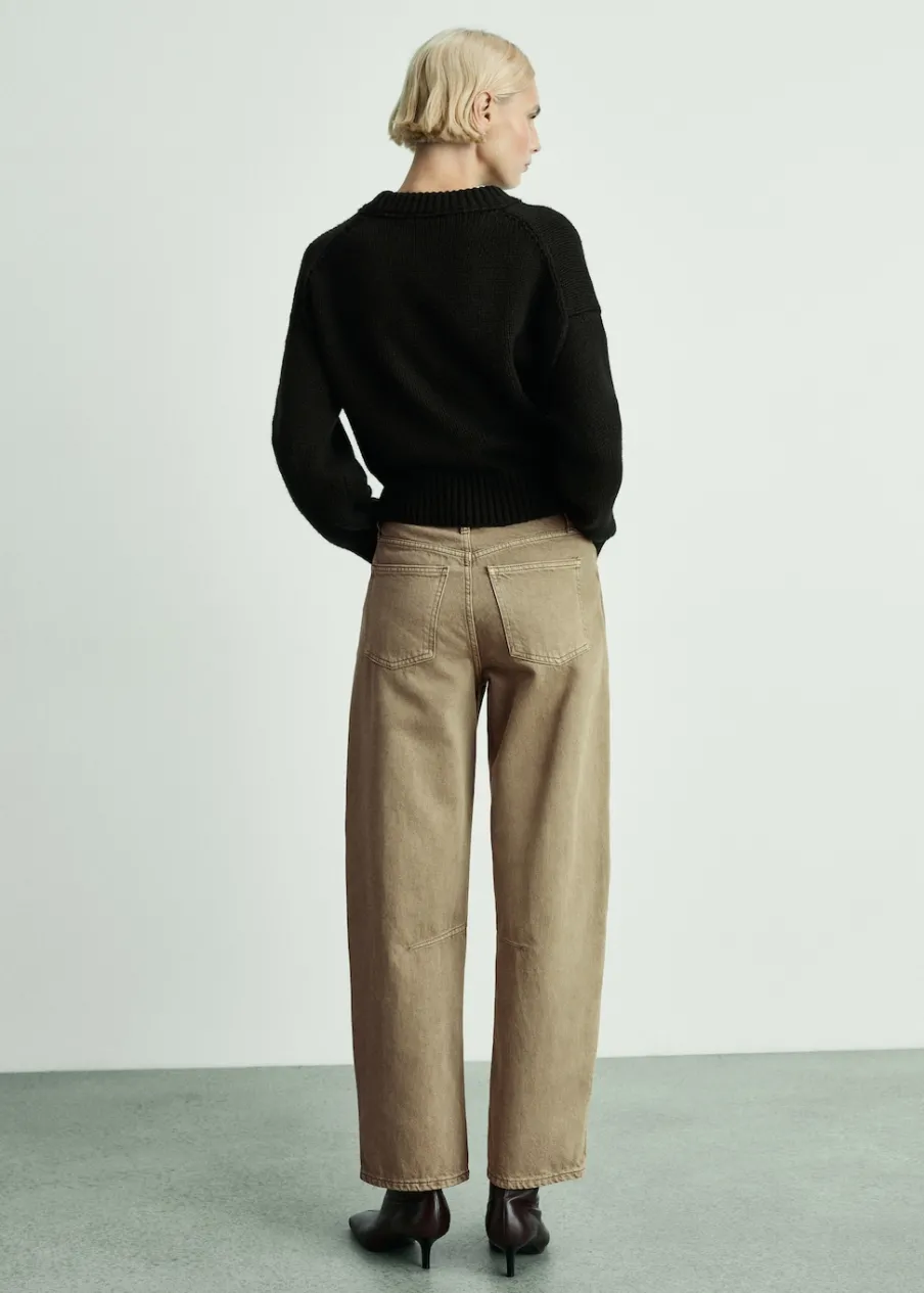 Tkanina bawełniana w dżinsowym stylu. Ze względu na zastosowanie naturalnych barwników odcień ubrania może się różnić od koloru na zdjęciu. Fason slouchy. Model długi. Fason balloon. Podwyższony stan. Szlufki. Pięć kieszeni. Zapięcie na suwak i guzik. Długość wewnętrzna 75 cm. Modelka ma 179 cm wzrostu i nosi rozmiar S/36.