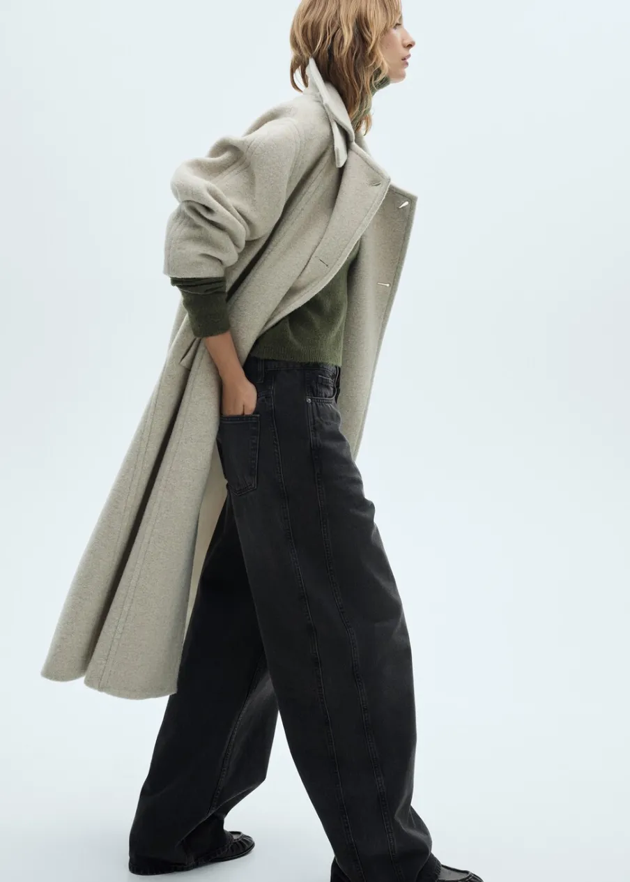 Tkanina bawełniana w dżinsowym stylu. Podwyższony stan. Fason balloon. Model długi. Model prosty. Pięć kieszeni. Szlufki. Zapięcie na zamek i guzik z przodu. Modelka ma 177 cm wzrostu i nosi rozmiar S/36.