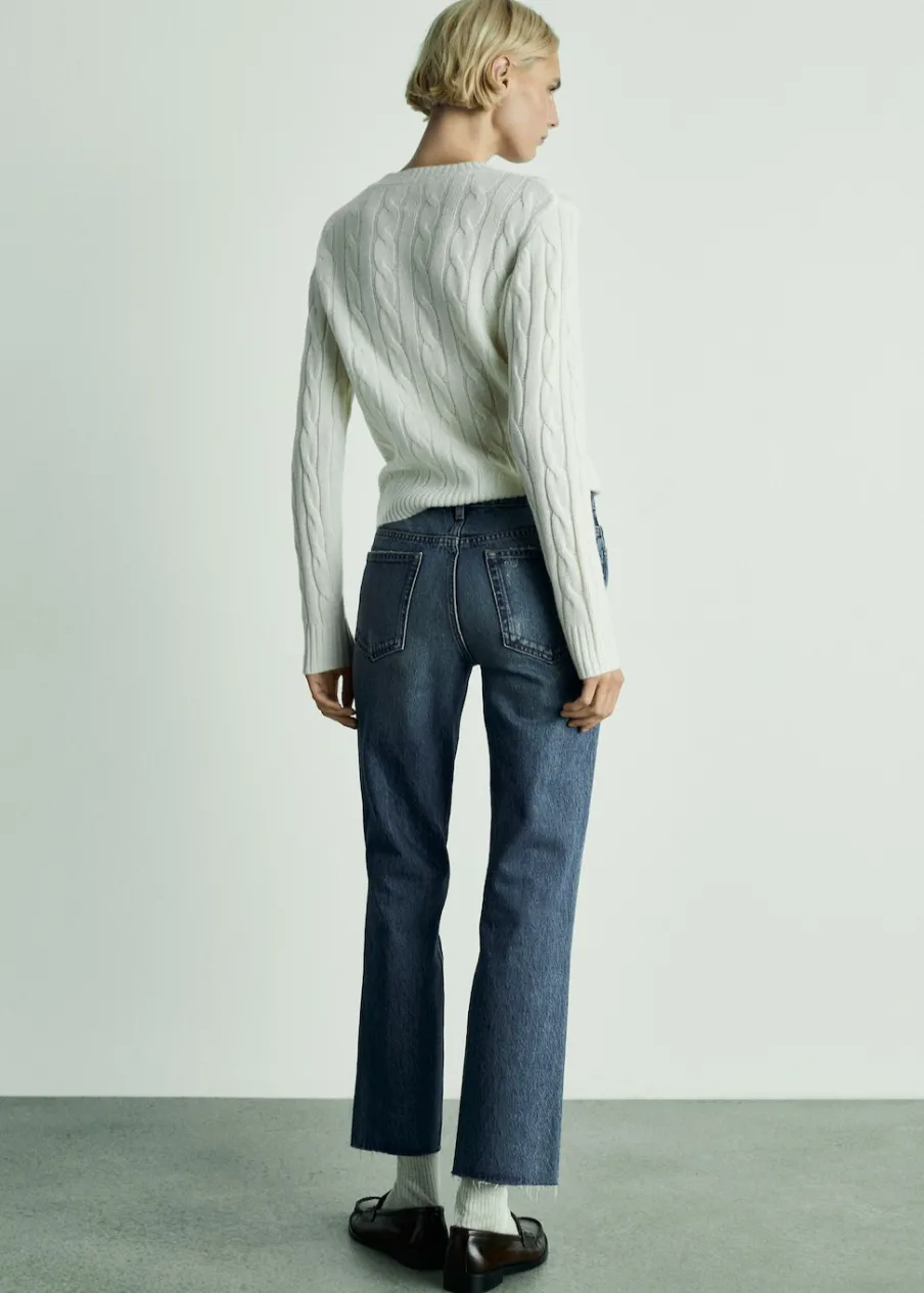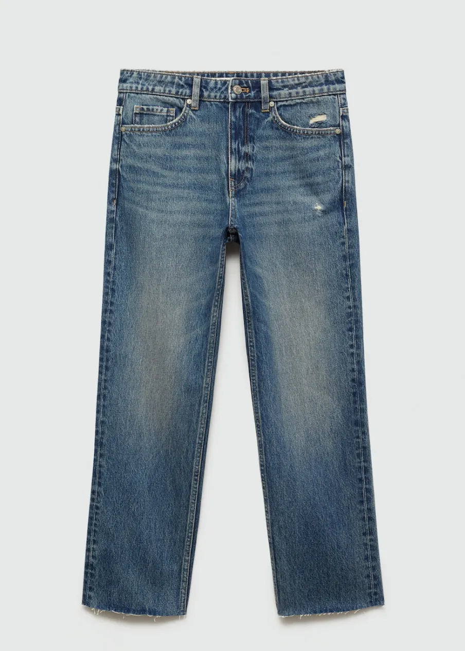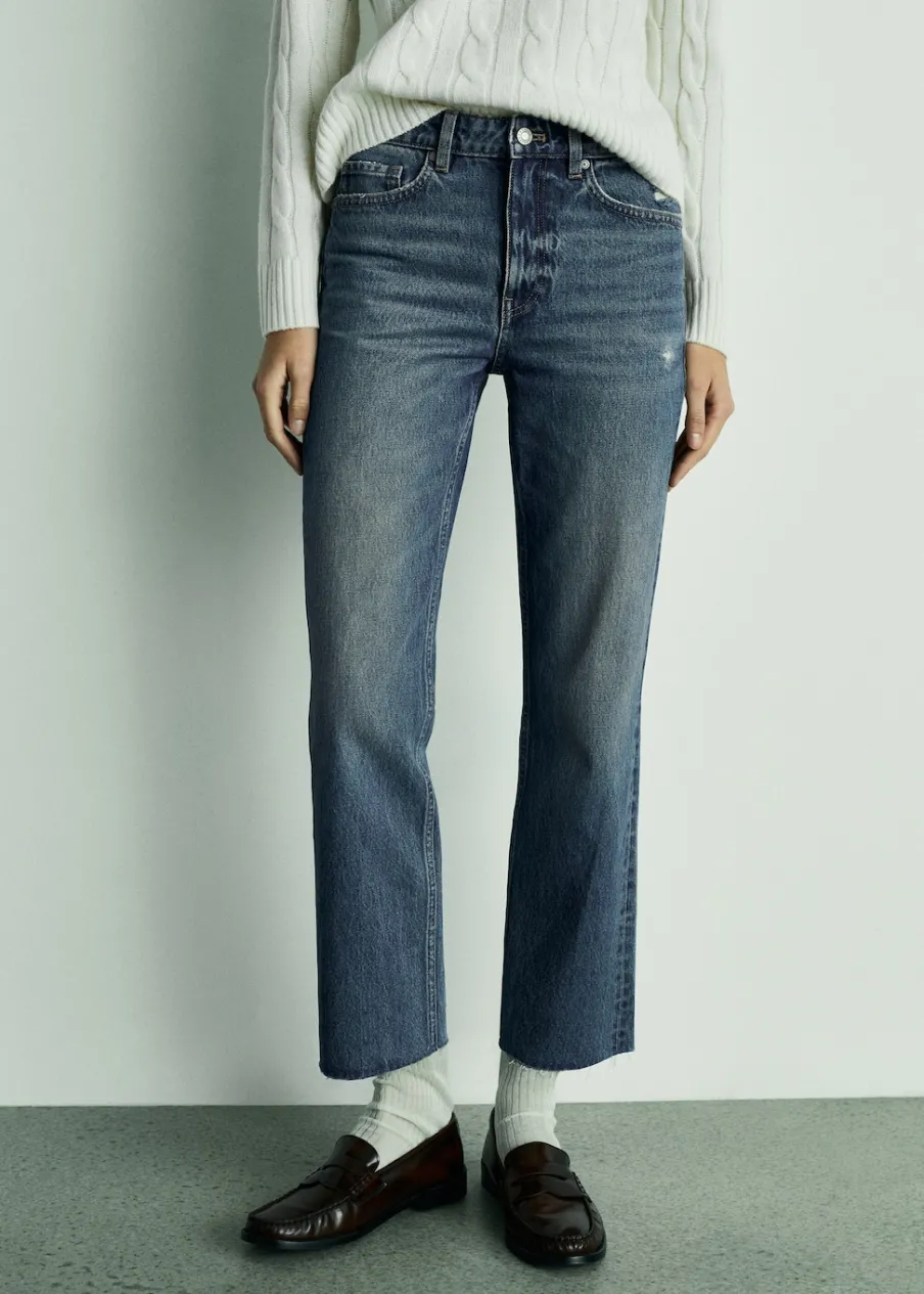 Tkanina bawełniana w dżinsowym stylu. Model prosty. Deseń crop. Średni stan. Szlufki. Pięć kieszeni. Zapięcie na suwak i guzik. Postrzępione nogawki. Długość wewnętrzna 68 cm. Dostępne w Plus Size. Modelka ma 179 cm wzrostu i nosi rozmiar S/36.