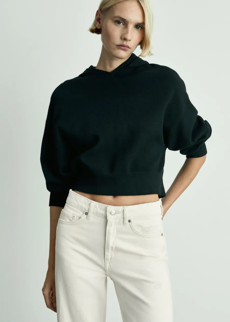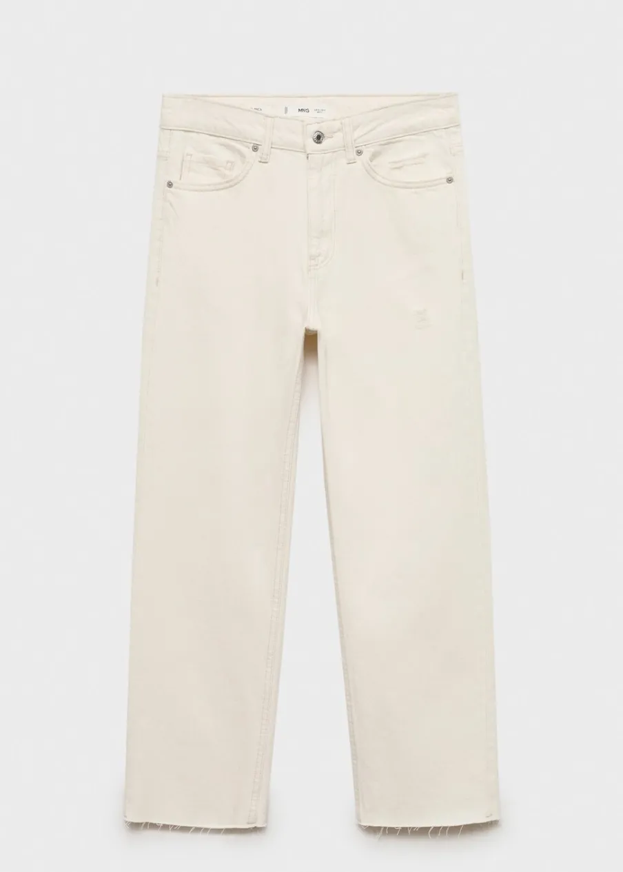 Tkanina bawełniana w dżinsowym stylu. Model prosty. Deseń crop. Średni stan. Szlufki. Pięć kieszeni. Zapięcie na suwak i guzik. Postrzępione nogawki. Długość wewnętrzna 68 cm.