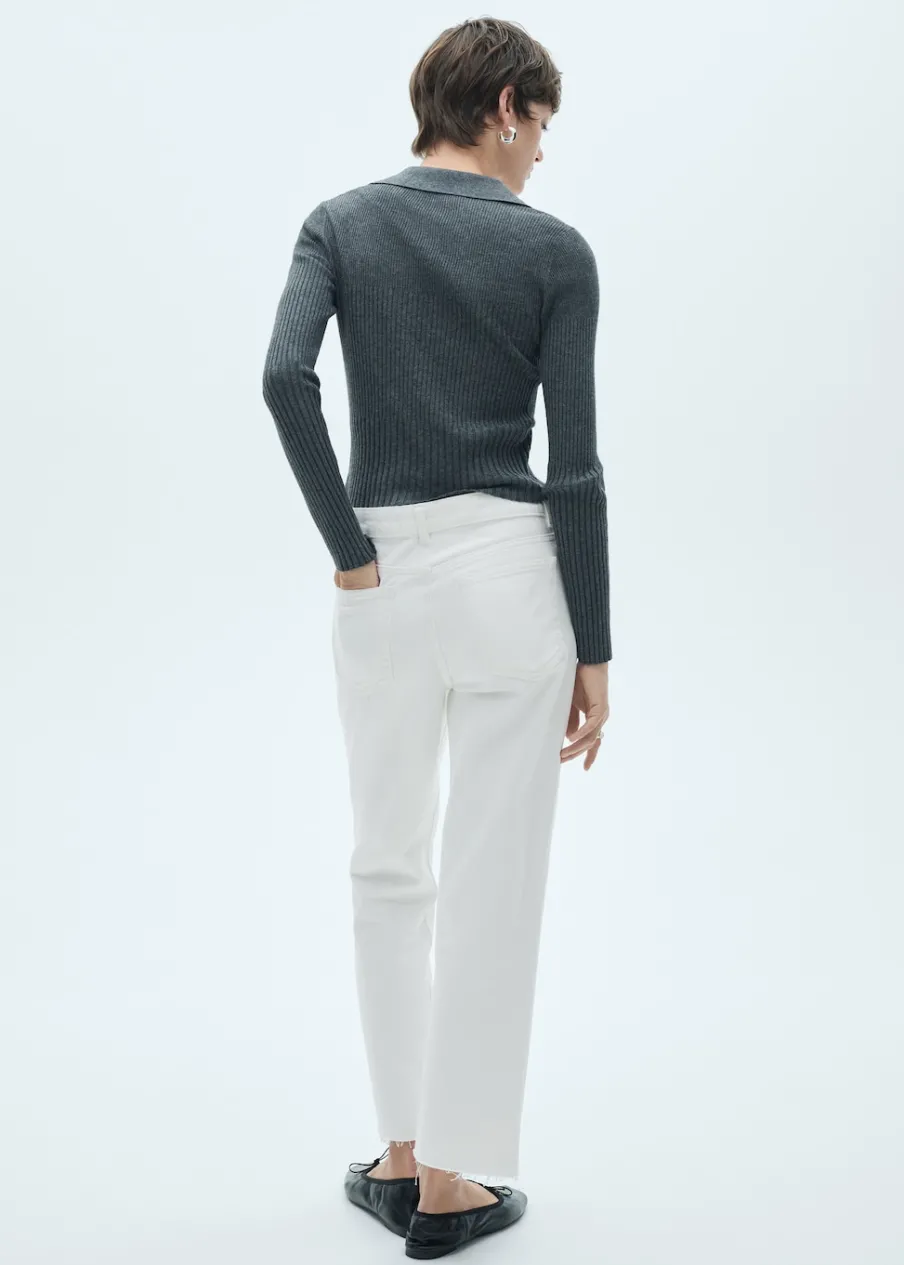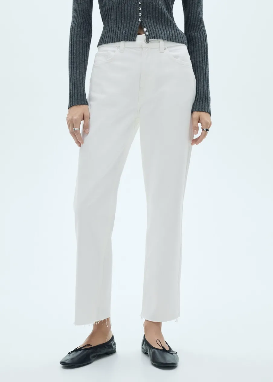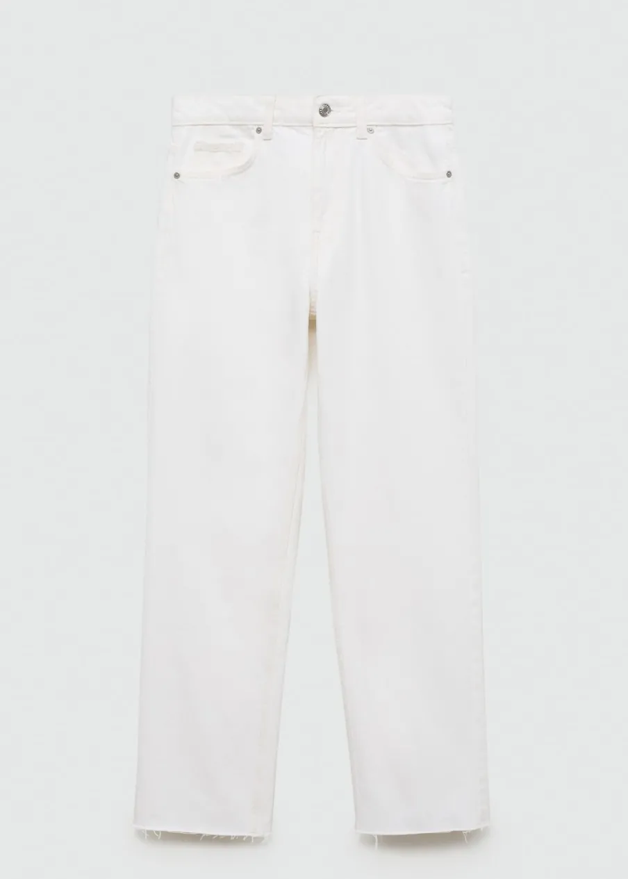Tkanina bawełniana w dżinsowym stylu. Model prosty. Deseń crop. Średni stan. Szlufki. Pięć kieszeni. Zapięcie na suwak i guzik. Postrzępione nogawki. Długość wewnętrzna 68 cm. Dostępne w Plus Size. Modelka ma 174 cm wzrostu i nosi rozmiar S/36.