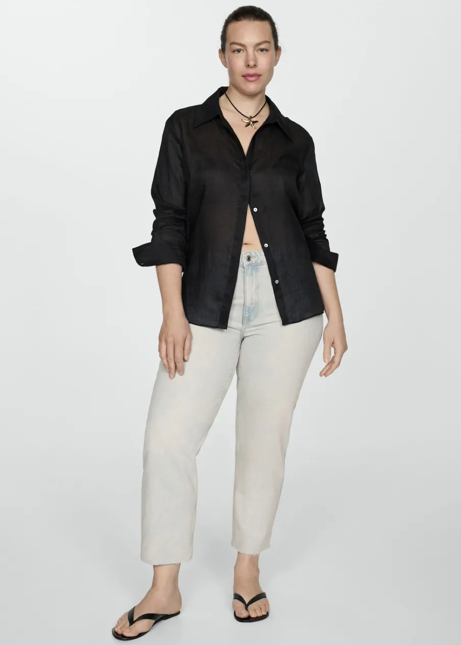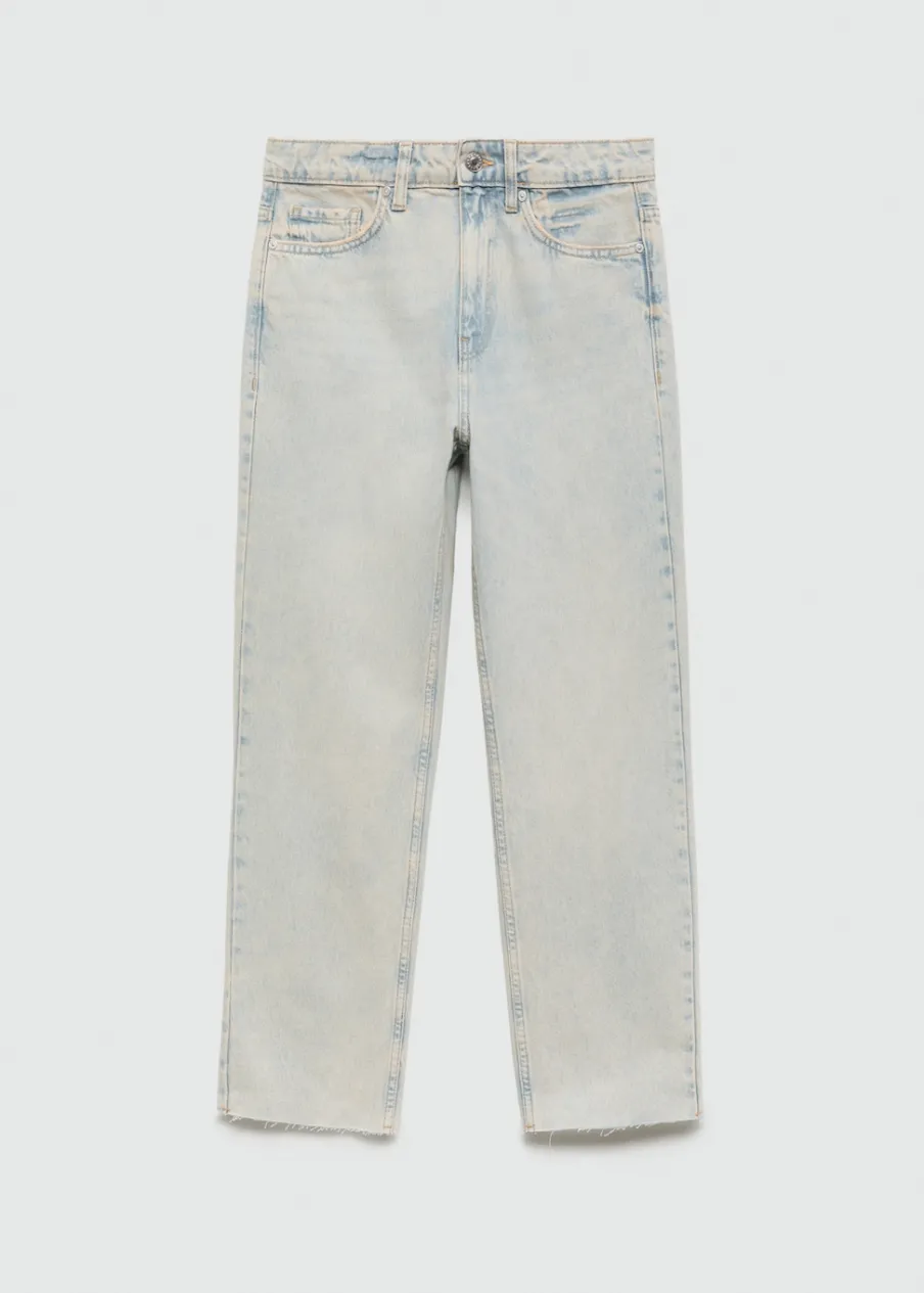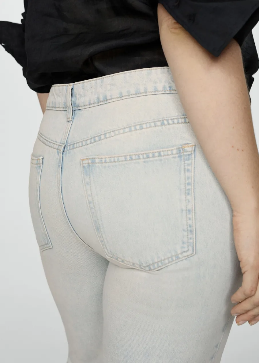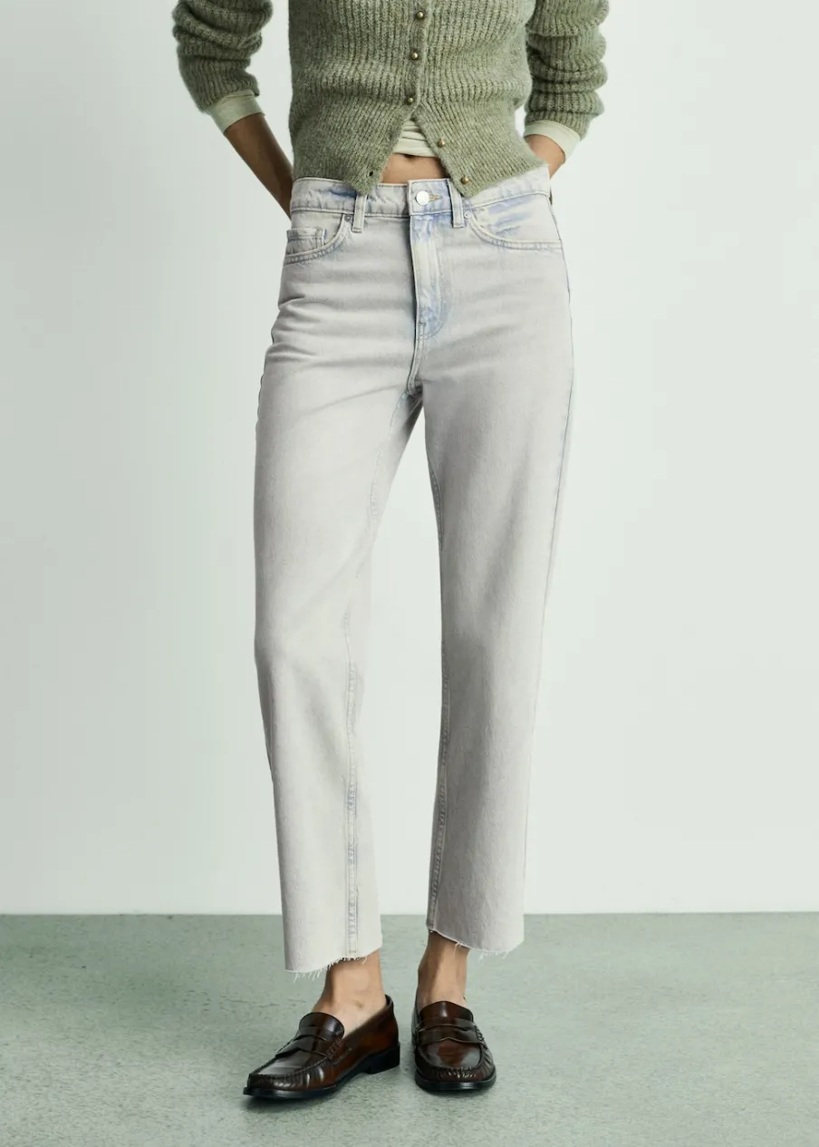 Tkanina bawełniana w dżinsowym stylu. Model prosty. Deseń crop. Średni stan. Szlufki. Pięć kieszeni. Zapięcie na suwak i guzik. Postrzępione nogawki. Długość wewnętrzna 68 cm. Dostępne w Plus Size. Modelka ma 179 cm wzrostu i nosi rozmiar S/36.