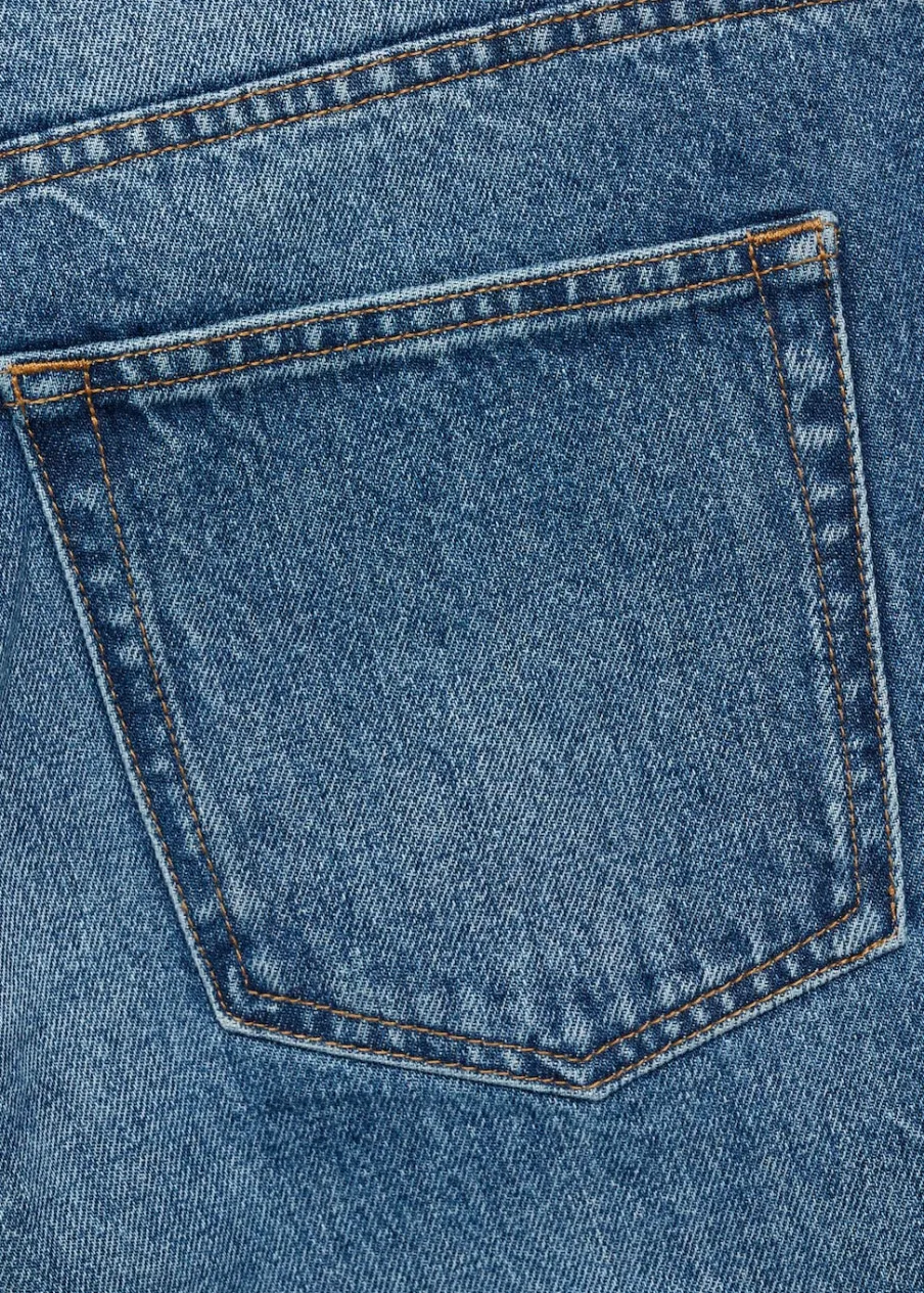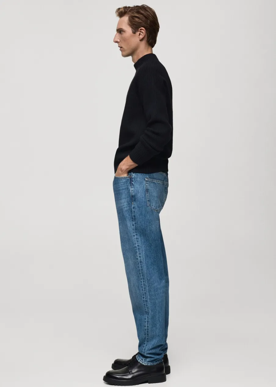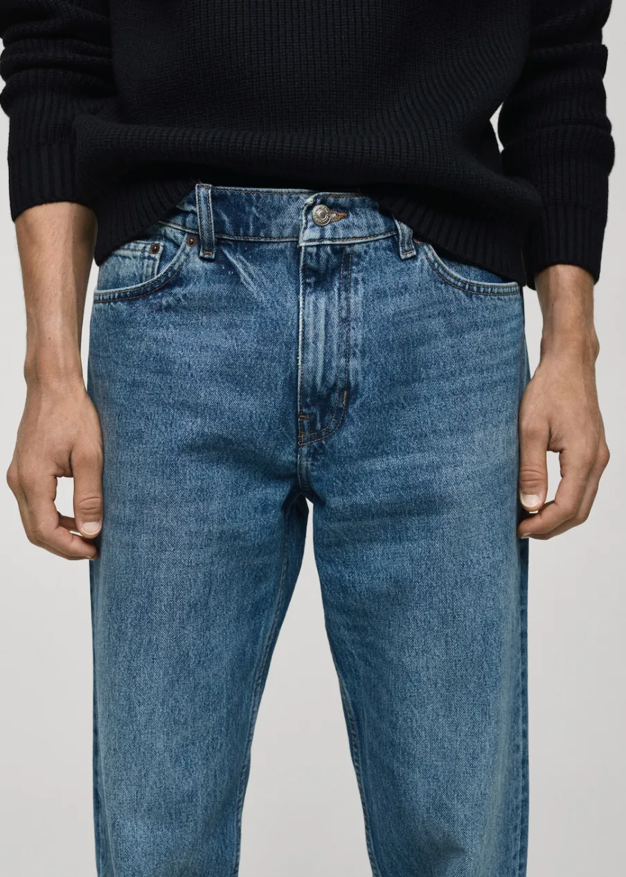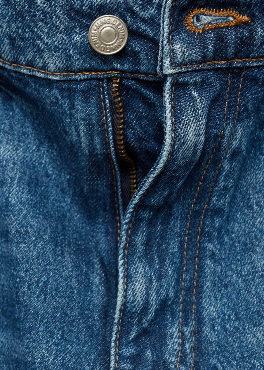 Średnie spranie. Średni stan. Szlufki na pasek. Zapięcie na suwak i guzik. Dwie kieszenie z przodu. Kieszeń na bilon. Dwie kieszenie nakładane z tyłu. Model ma 190 cm wzrostu i nosi rozmiar 42. Spodnie mają długość 113 cm w rozmiarze 42: o 7 cm dłuższe niż zazwyczaj. Model długi. Tkanina bawełniana. Krój regular.
