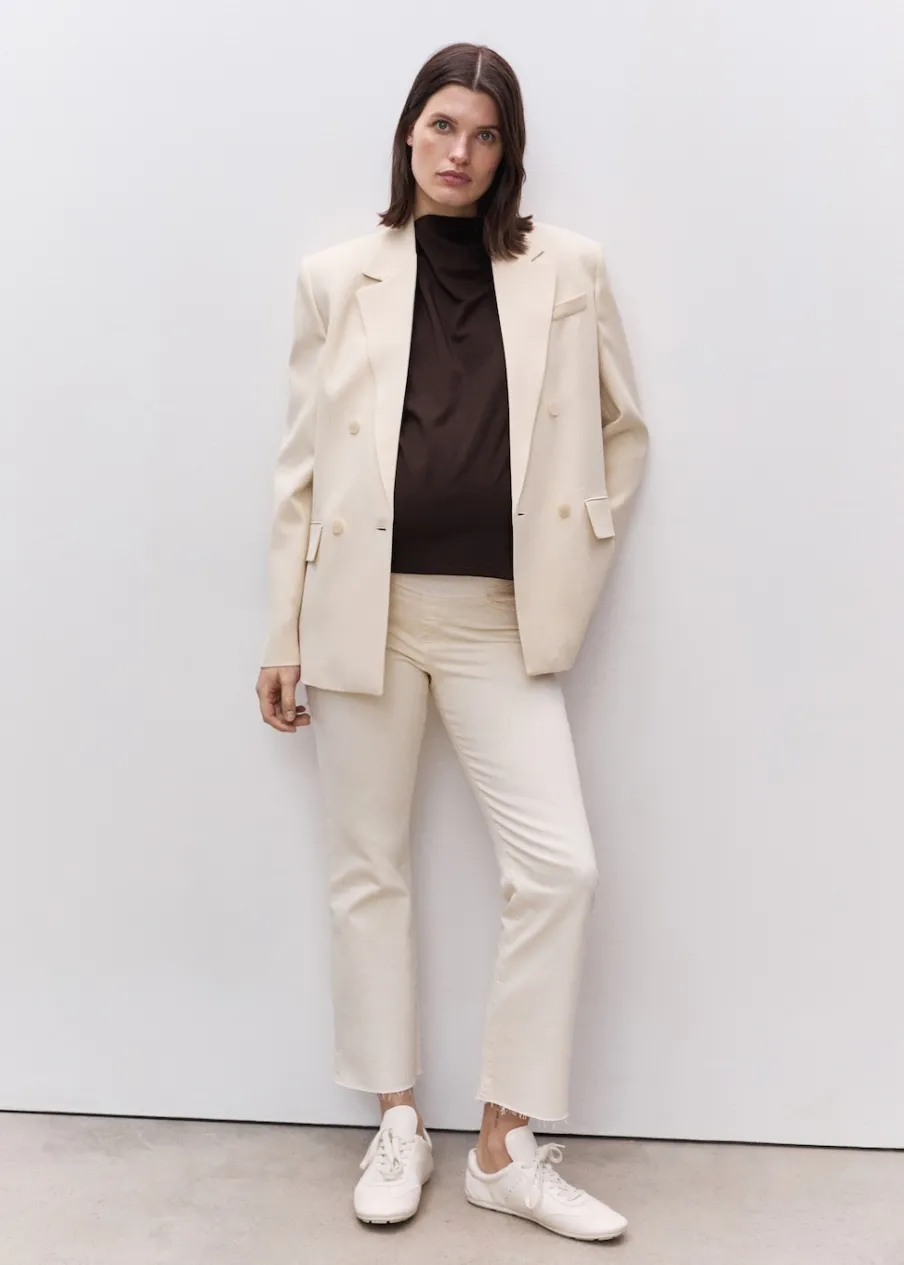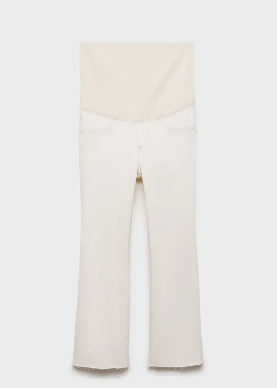 Tkanina bawełniana w dżinsowym stylu. Typu dzwony. Styl flare. Deseń crop. Fason bootcut. Średnia wielkość. Niski stan. Elastyczny pas. Dwie kieszenie nakładane z tyłu. Elastyczny pas z dzianiny w talii dla lepszego podtrzymania i komfortu. Bez paska. Bez zapięcia. Długość wewnętrzna 82 cm. Polecamy kupić zwyczajowy rozmiar. Zapewnia wygodę i swobodę ruchów. Odzież ciążowa. Modelka ma 178 cm wzrostu i nosi rozmiar S/36.