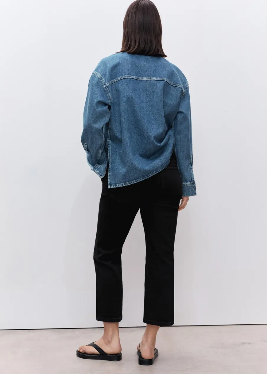 Tkanina bawełniana w dżinsowym stylu. Model prosty. Deseń crop. Niski stan. Szlufki. Pięć kieszeni. Elastyczny pas z dzianiny w talii dla lepszego podtrzymania i komfortu. Bez zapięcia. Ozdobny guzik. Długość wewnętrzna 66 cm. Polecamy kupić zwyczajowy rozmiar. Zapewnia wygodę i swobodę ruchów. Odzież ciążowa. Modelka ma 178 cm wzrostu i nosi rozmiar S/36. Elastyczna gumka. Elastyczny pas.
