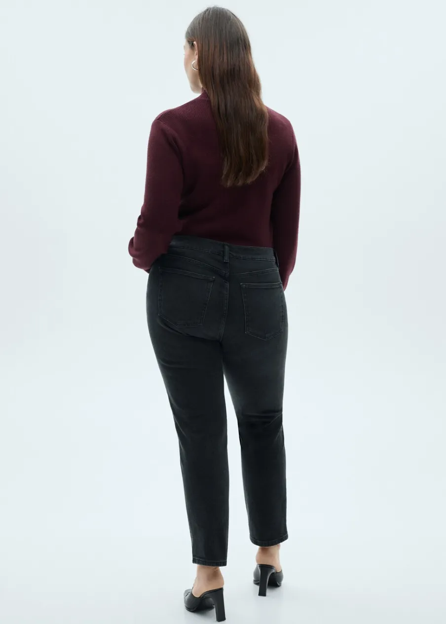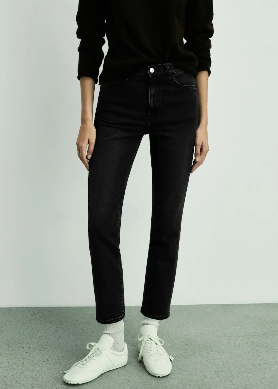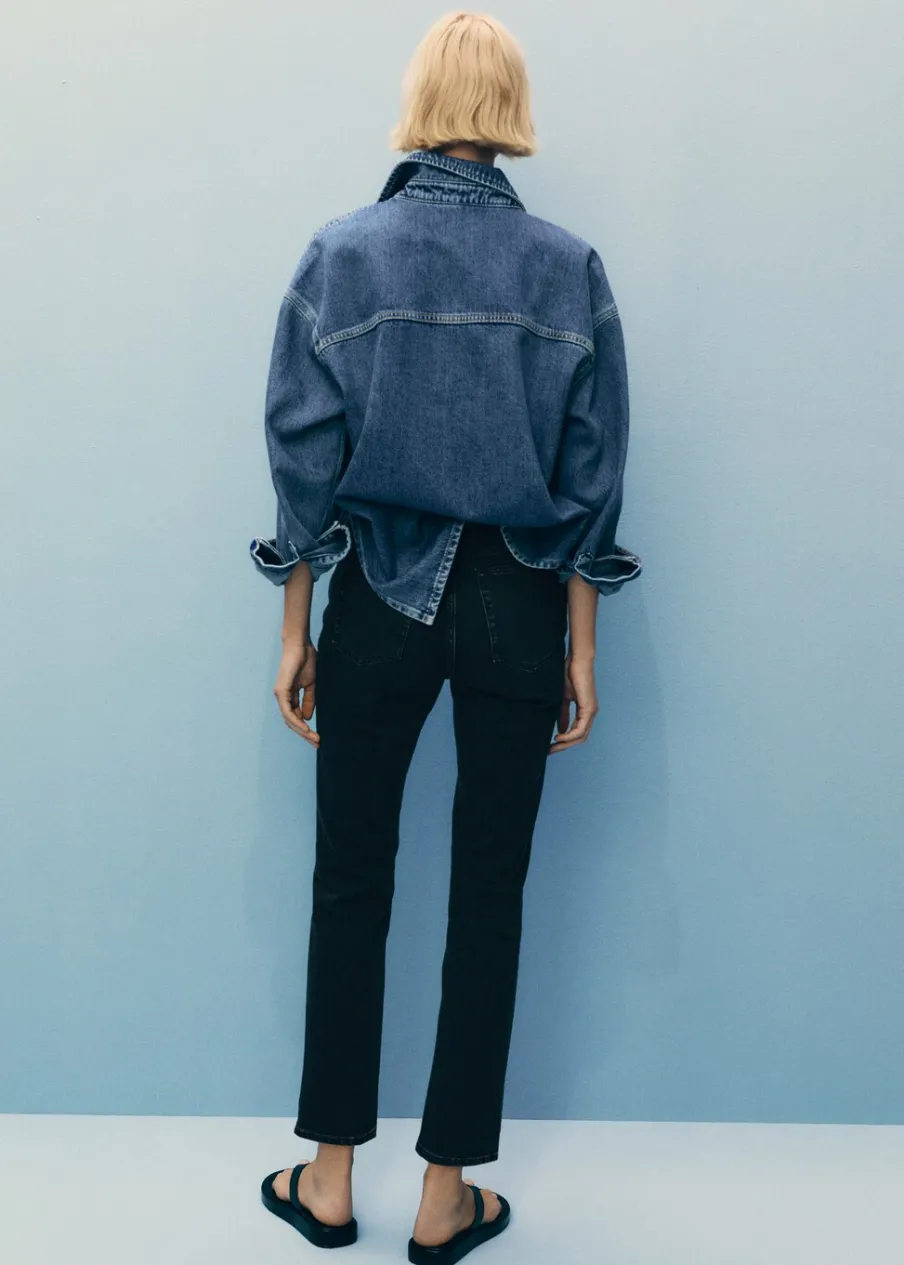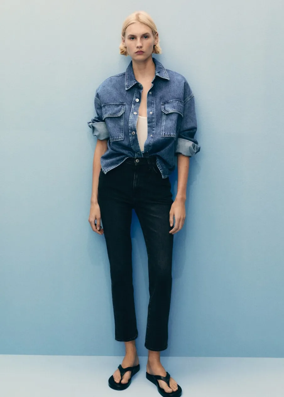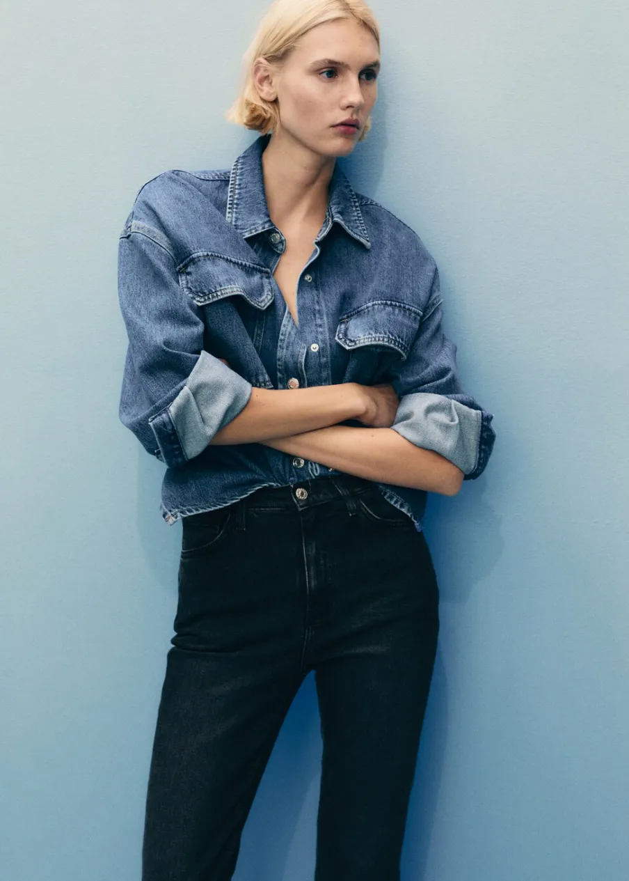 Tkanina bawełniana w dżinsowym stylu. Elastyczna tkanina. Deseń crop. Slim-fit. Średni stan. Szlufki. Pięć kieszeni. Zapięcie na suwak i guzik. Długość wewnętrzna 68 cm. Modelka ma 179 cm wzrostu i nosi rozmiar S/36.