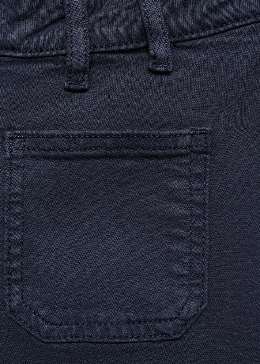 OpisTkanina bawełniana w dżinsowym stylu. Podwyższony stan. Fason culotte. Dwie kieszenie nakładane z przodu. Dwie k…