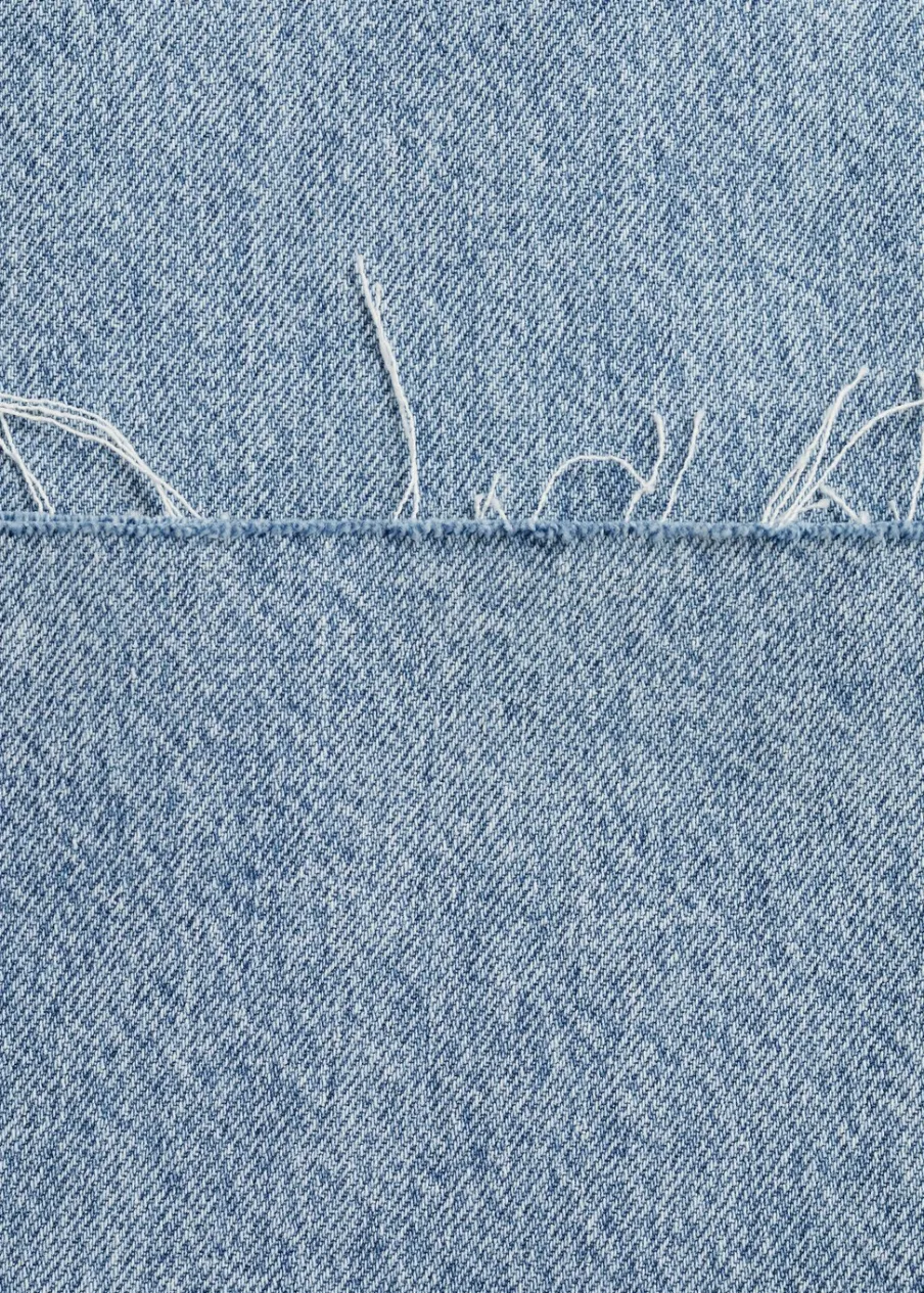 OpisTkanina bawełniana w dżinsowym stylu. Model długi. Fason wideleg. Pięć kieszeni. Szlufki. Postrzępione nogawki…