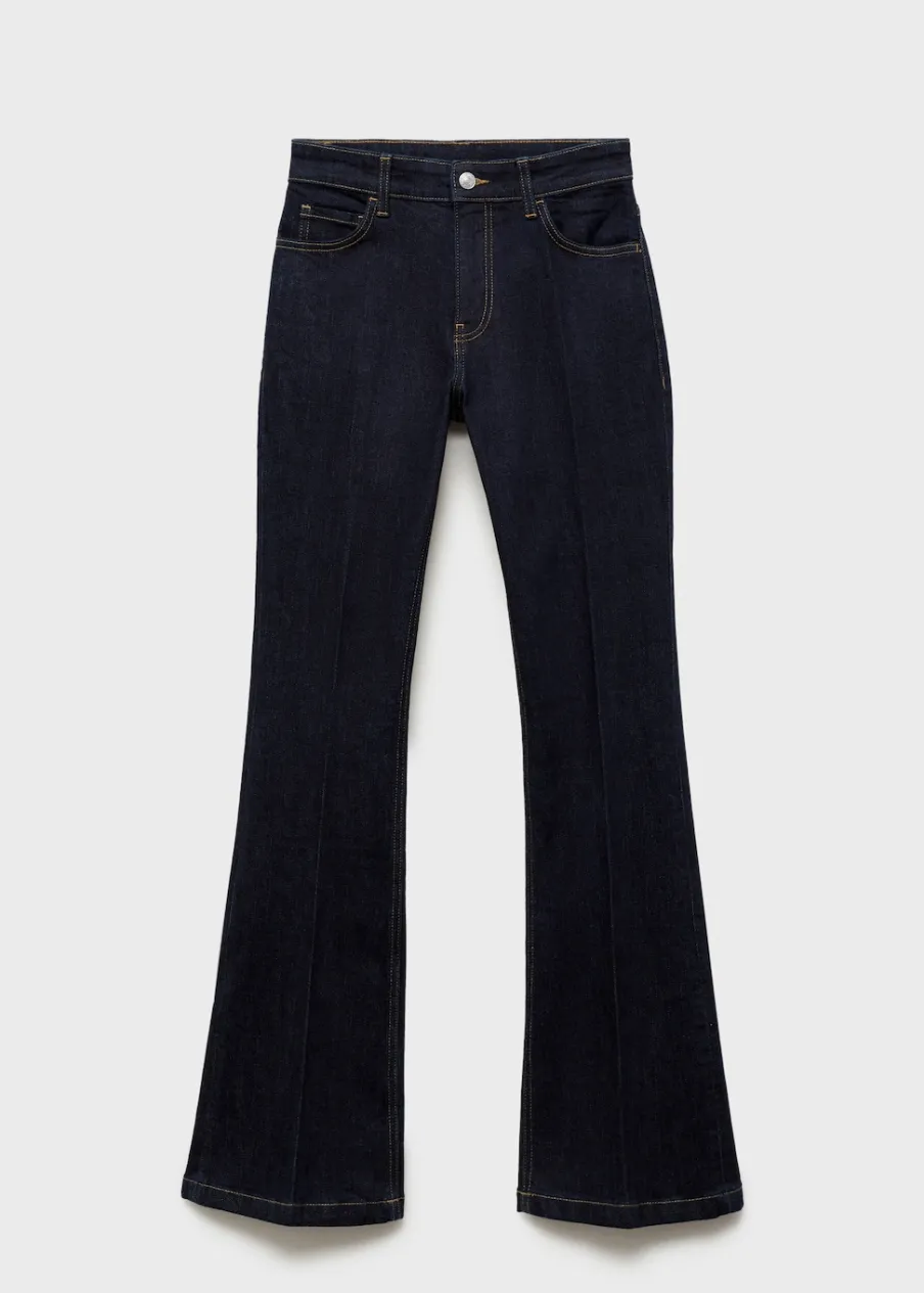 Tkanina bawełniana w dżinsowym stylu. Rinse wash. Model długi. Styl flare. Typu dzwony. Średni stan. Pięć kieszeni. Szlufki. Zapięcie na zamek i guzik z przodu. Długość wewnętrzna 85 cm.