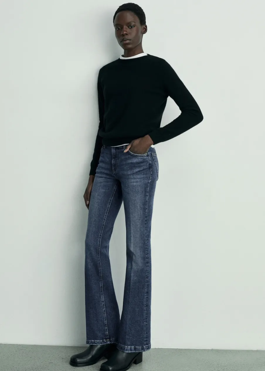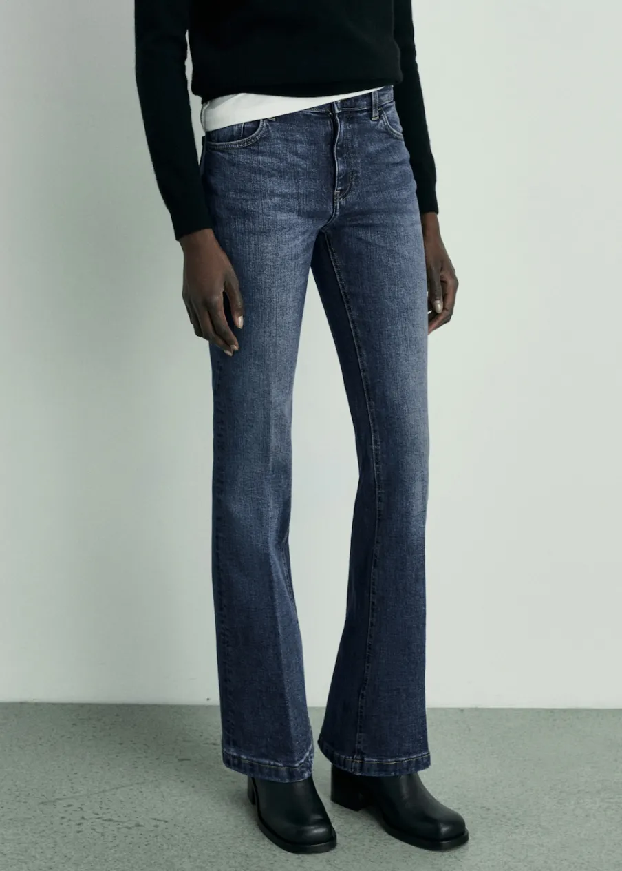 OpisTkanina bawełniana w dżinsowym stylu. Typu dzwony. Styl flare. Średni stan. Szlufki. Pięć kieszeni. Zapięcie n…
