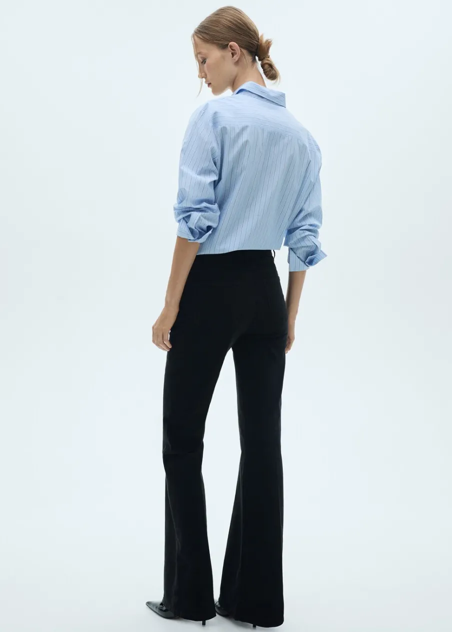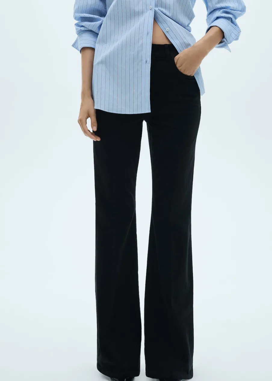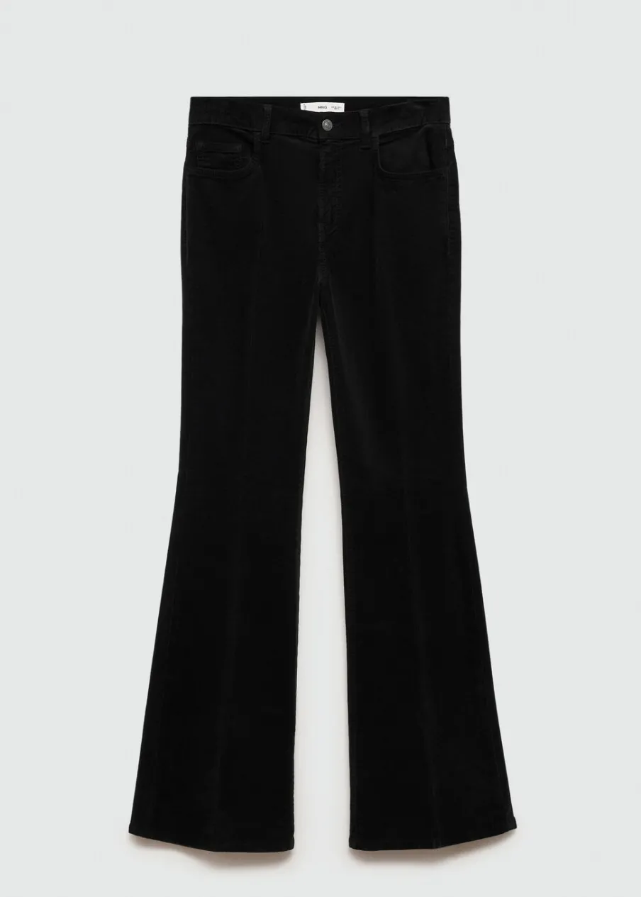 Sztruksowa tkanina. Rozszerzany model. Model długi. Średni stan. Szlufki. Pięć kieszeni. Zapięcie na suwak i guzik. Modelka ma 177 cm wzrostu i nosi rozmiar S/36.
