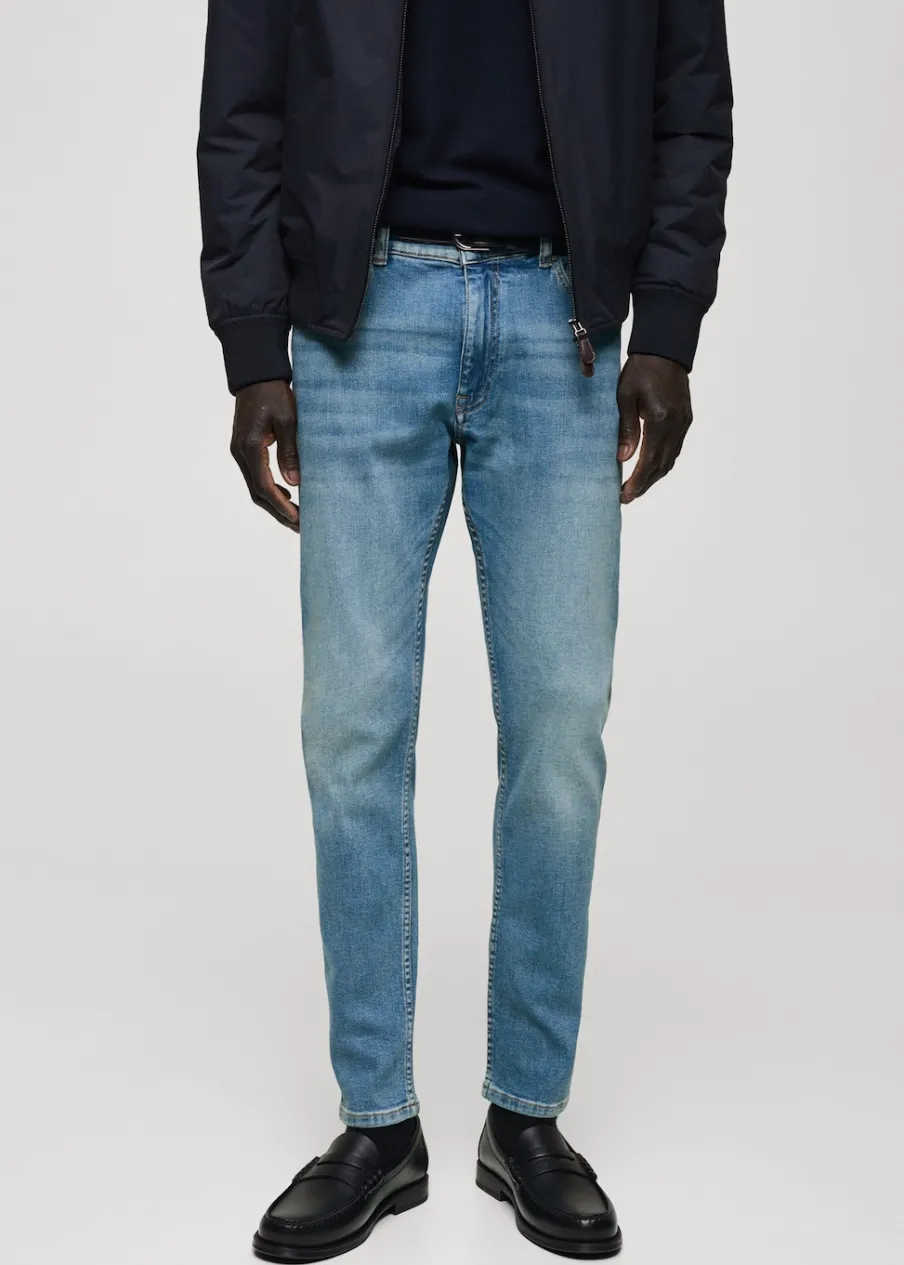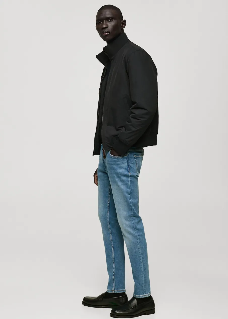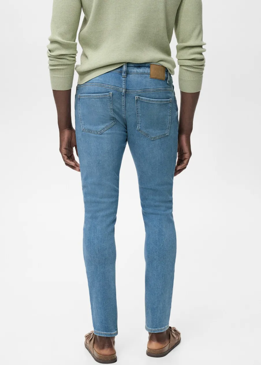 Krój skinny: jeansy bardziej dopasowane. Jeansowy styl. Tkanina bawełniana. Średnie spranie. Szlufki na pasek. Zapięcie na suwak i guzik. Dwie kieszenie boczne. Kieszeń na bilon. Dwie kieszenie nakładane z tyłu. Model ma 185 cm wzrostu i nosi rozmiar 42.