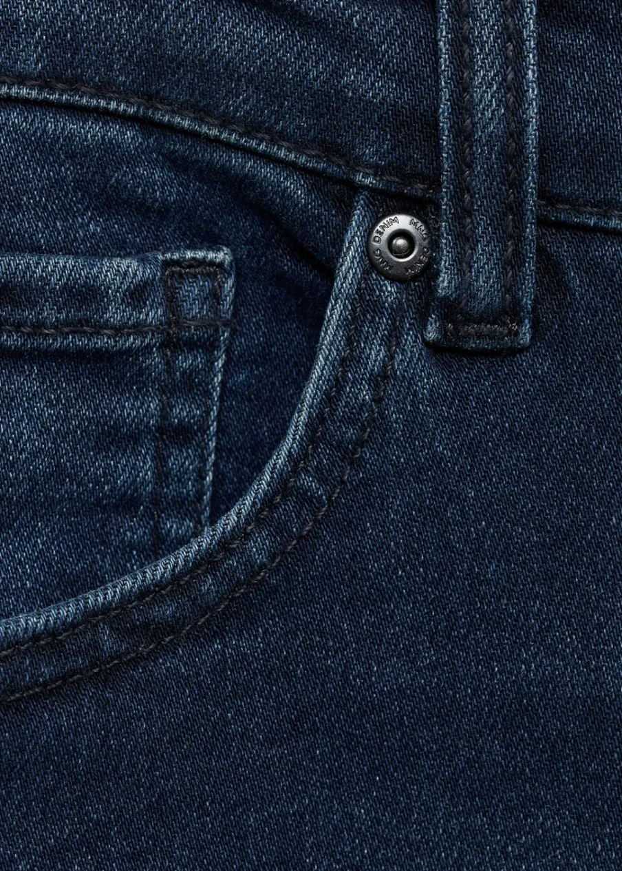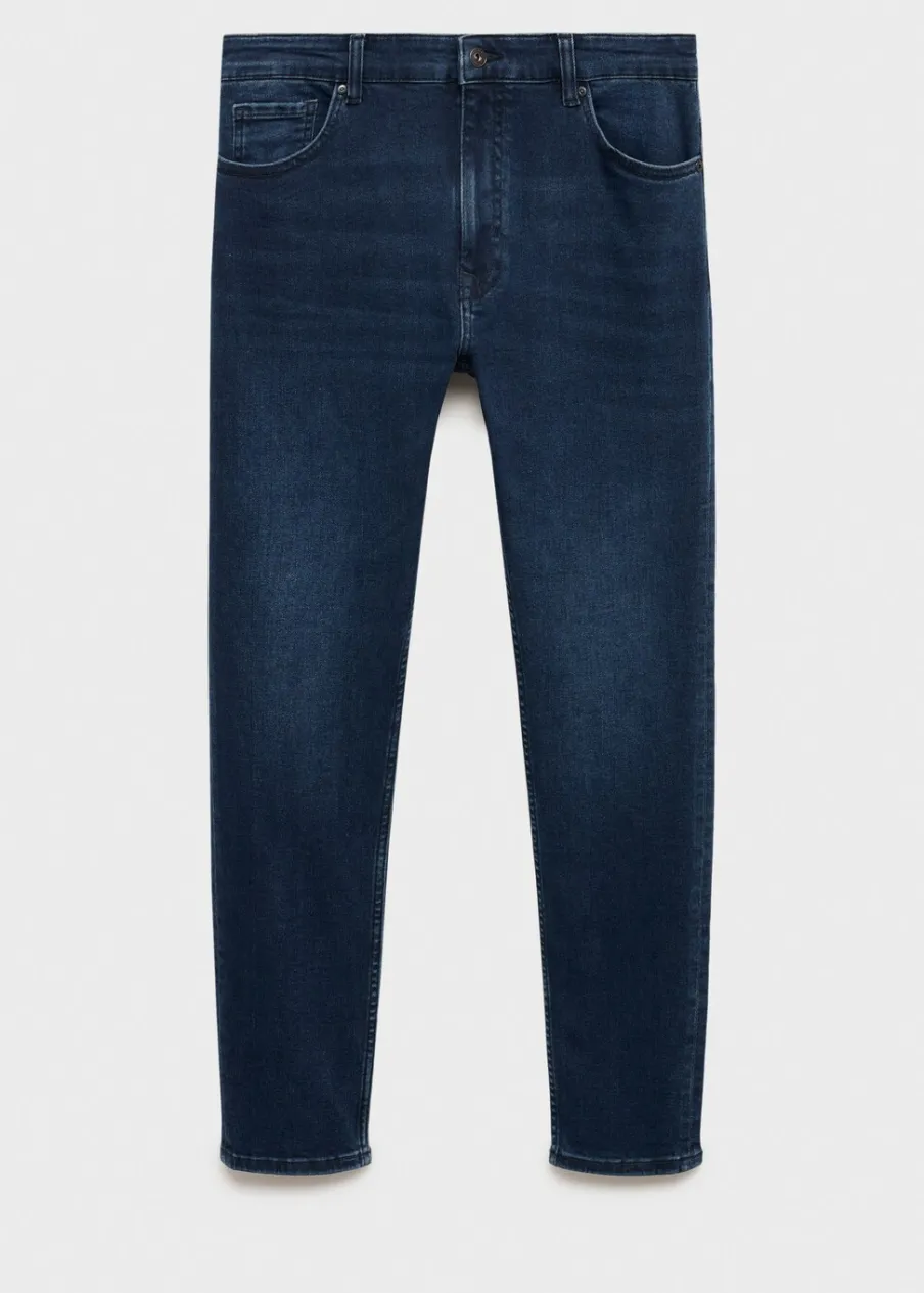 Krój skinny: jeansy bardziej dopasowane. Jeansowy styl. Tkanina bawełniana. Spranie na ciemno. Szlufki na pasek. Zapięcie na suwak i guzik. Dwie kieszenie boczne. Kieszeń na bilon. Dwie kieszenie nakładane z tyłu. Model ma 185 cm wzrostu i nosi rozmiar 42.