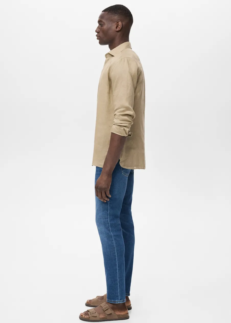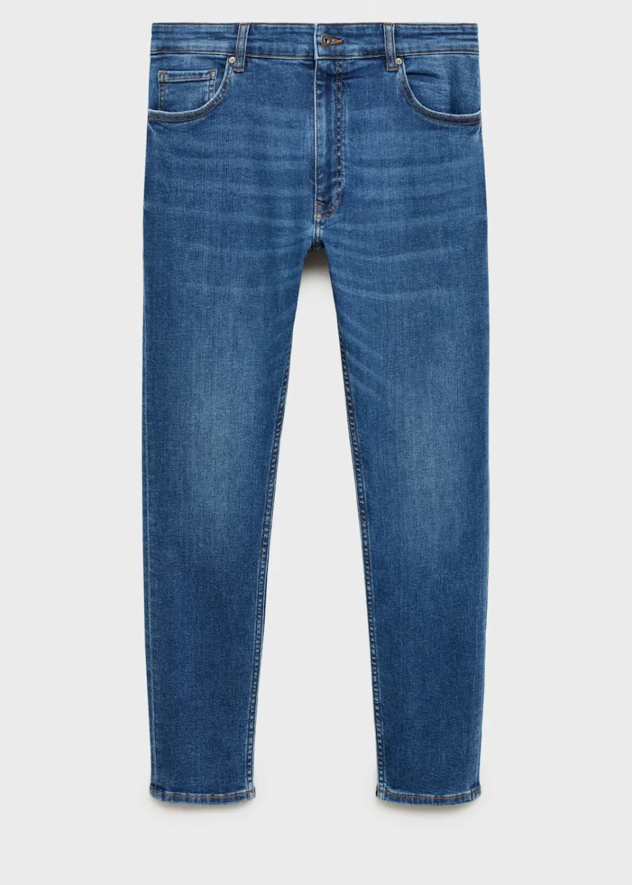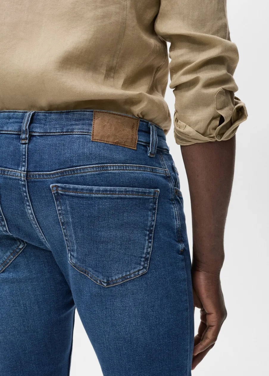 Krój skinny: jeansy bardziej dopasowane. Jeansowy styl. Tkanina bawełniana. Średnie spranie. Szlufki na pasek. Zapięcie na suwak i guzik. Dwie kieszenie boczne. Kieszeń na bilon. Dwie kieszenie nakładane z tyłu. Model ma 185 cm wzrostu i nosi rozmiar 42.