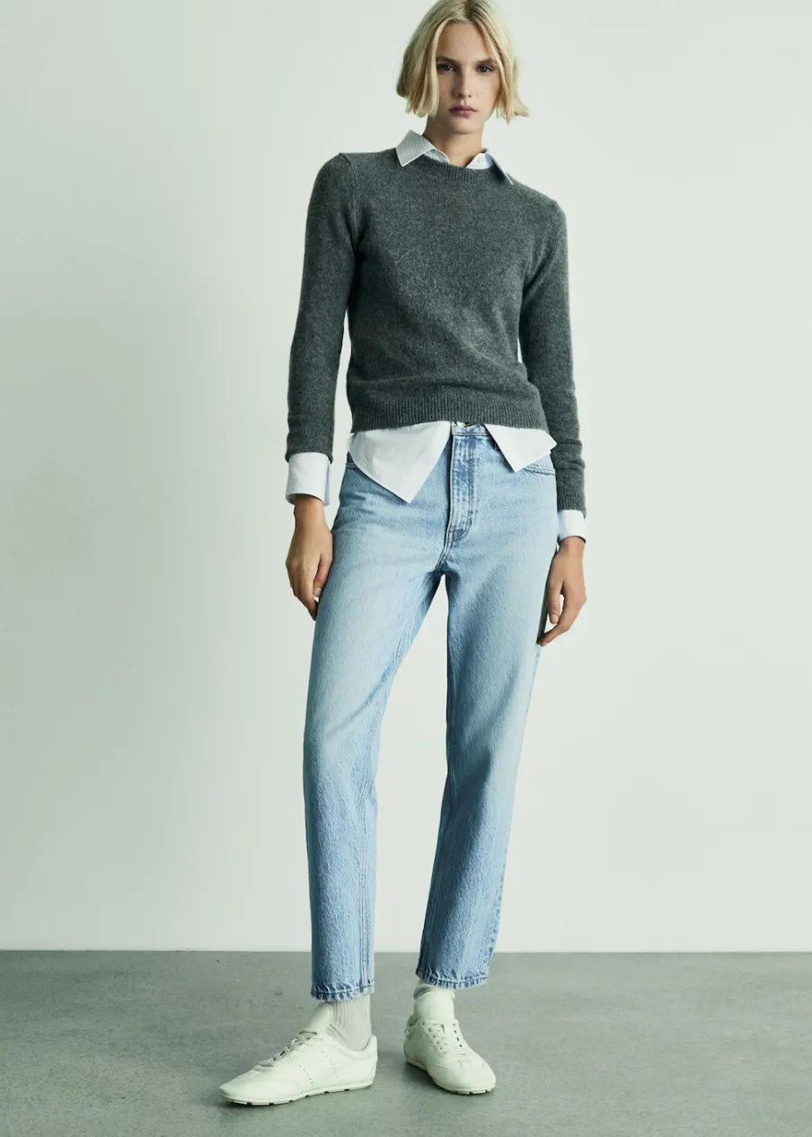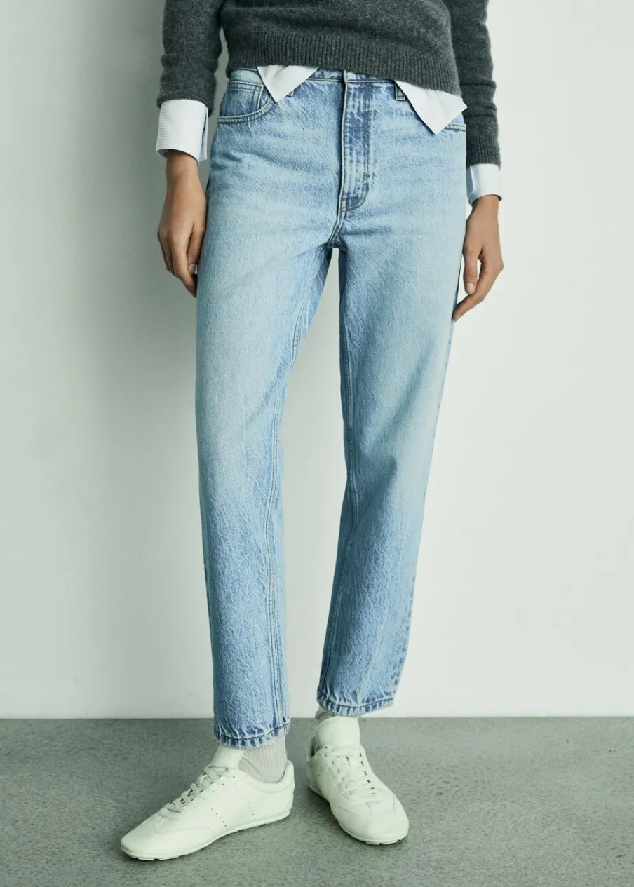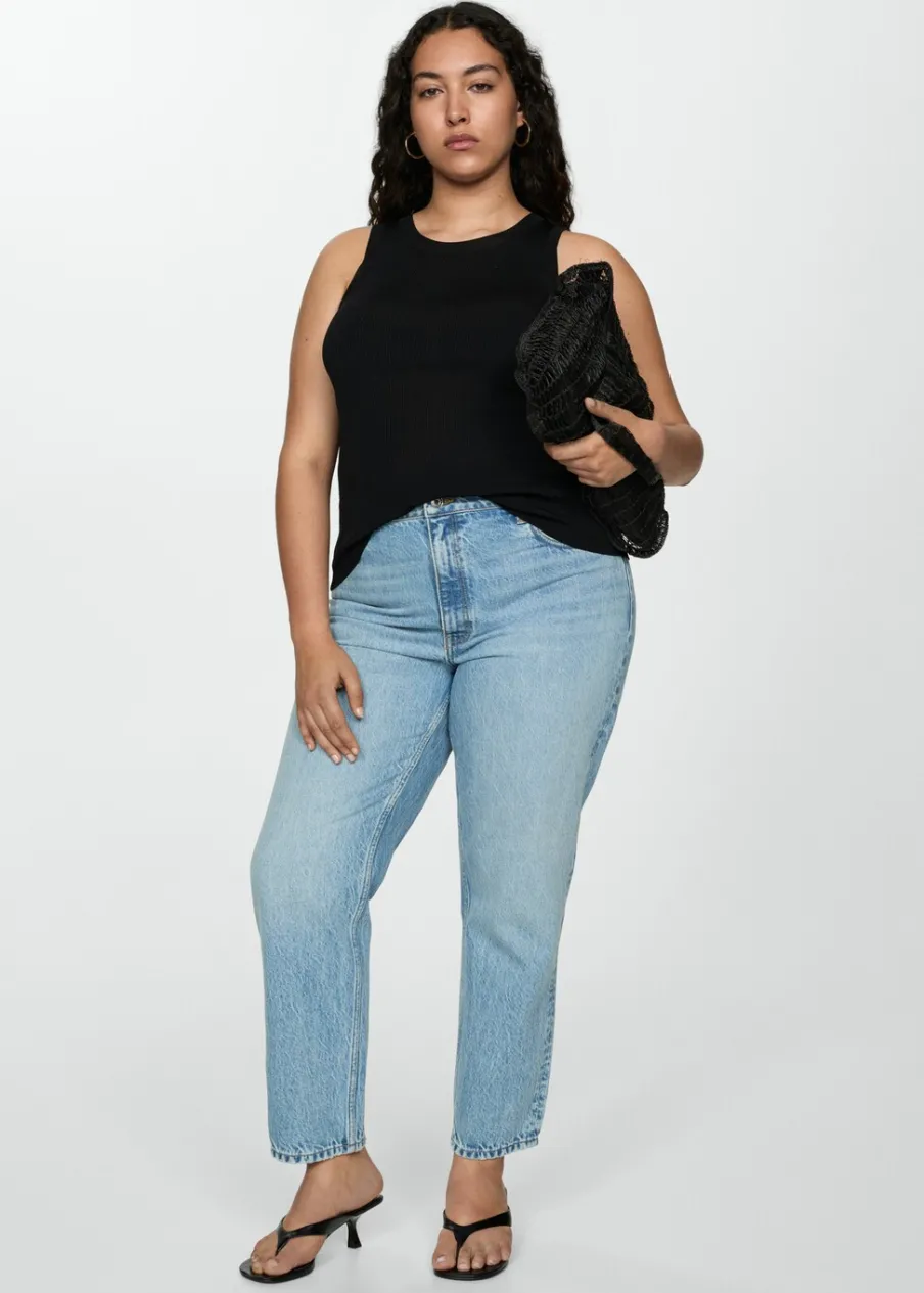 Tkanina bawełniana w dżinsowym stylu. Mom-fit. Podwyższony stan. Szlufki. Pięć kieszeni. Zapięcie na suwak i guzik. Dostępne w Plus Size. Długość wewnętrzna 69 cm.