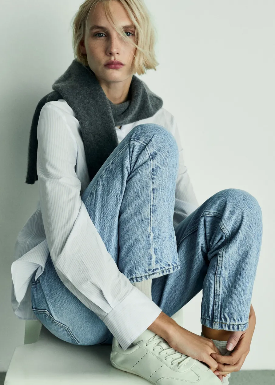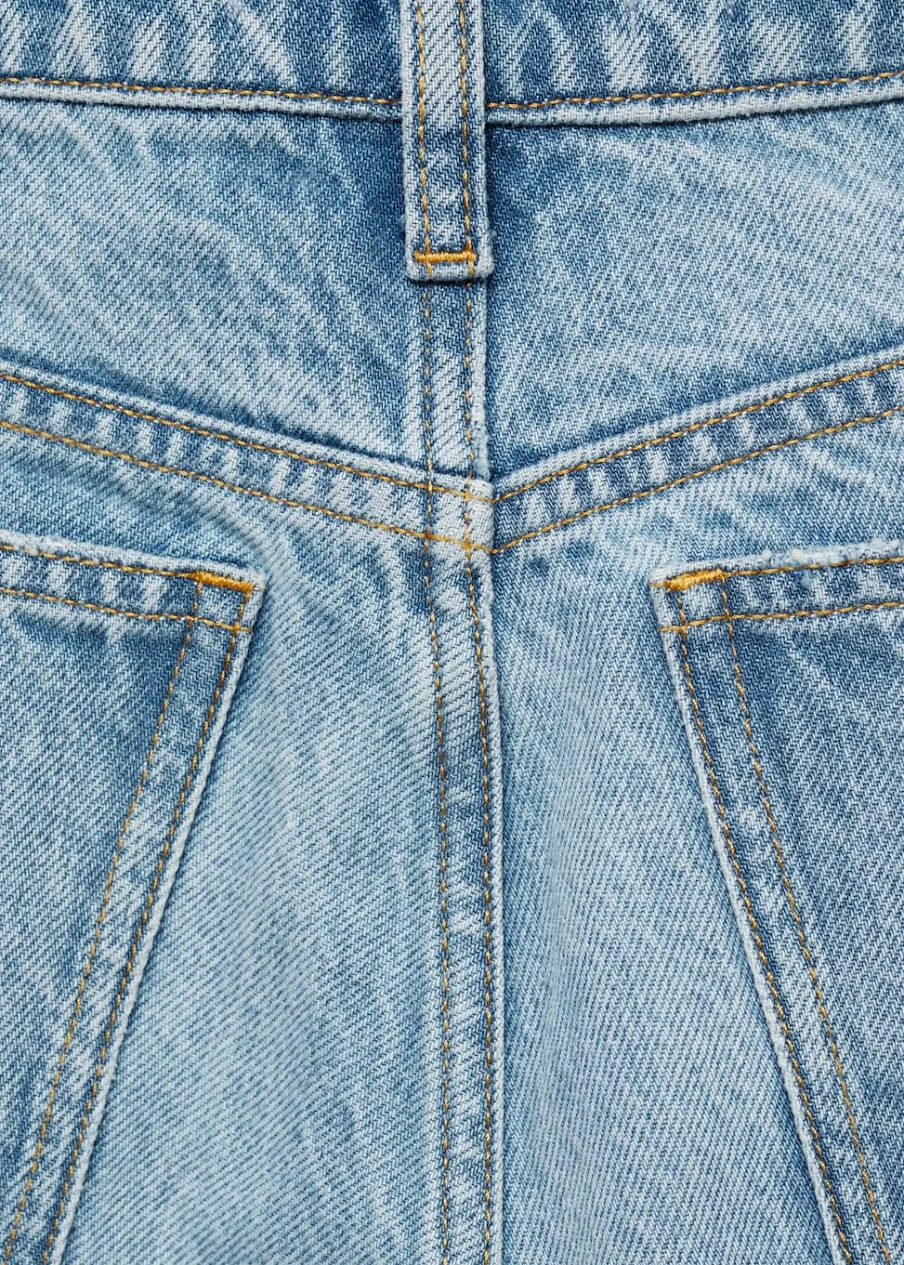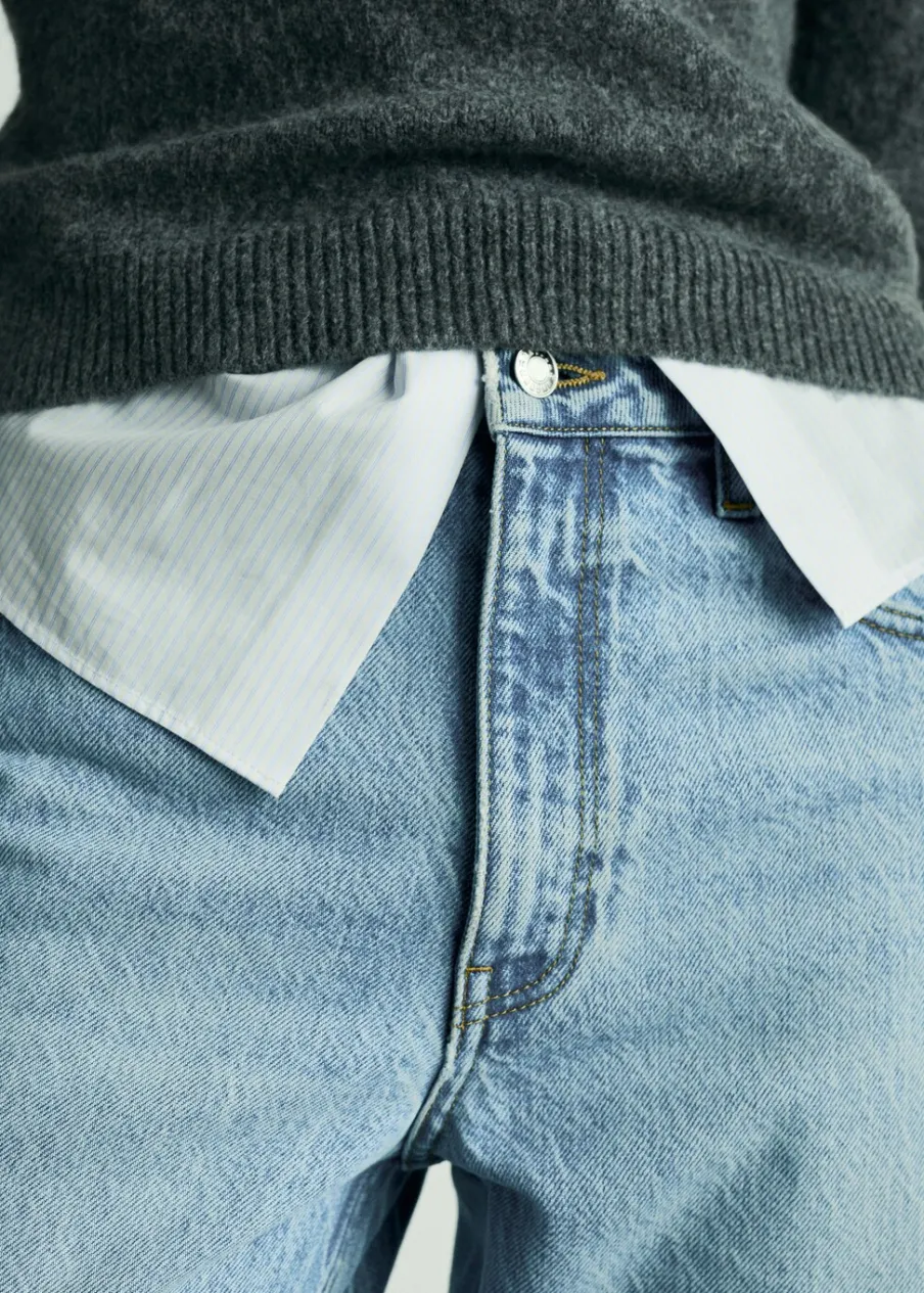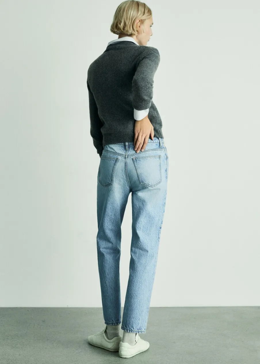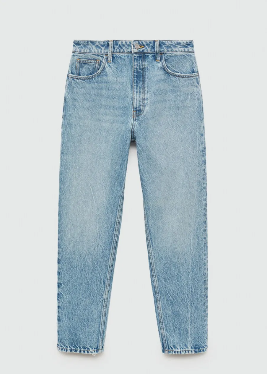 OpisTkanina bawełniana w dżinsowym stylu. Mom-fit. Podwyższony stan. Szlufki. Pięć kieszeni. Zapięcie na suwak i g…