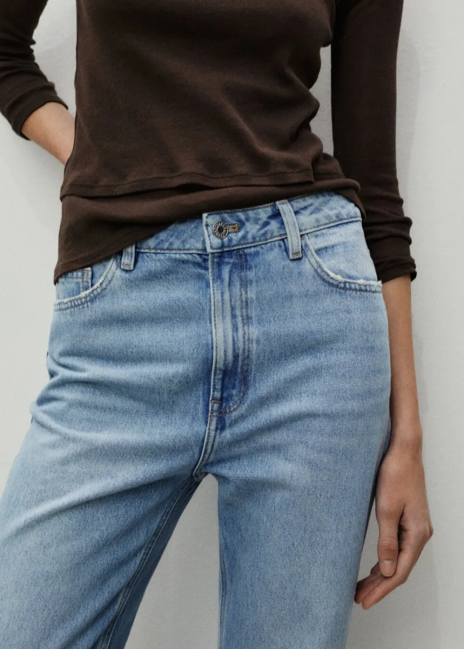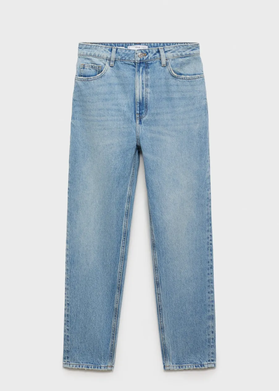 Tkanina bawełniana w dżinsowym stylu. Mom-fit. Podwyższony stan. Szlufki. Pięć kieszeni. Zapięcie na zamek i guzik z przodu. Dostępne w Plus Size. Długość wewnętrzna 69 cm. Modelka ma 179 cm wzrostu i nosi rozmiar S/36.