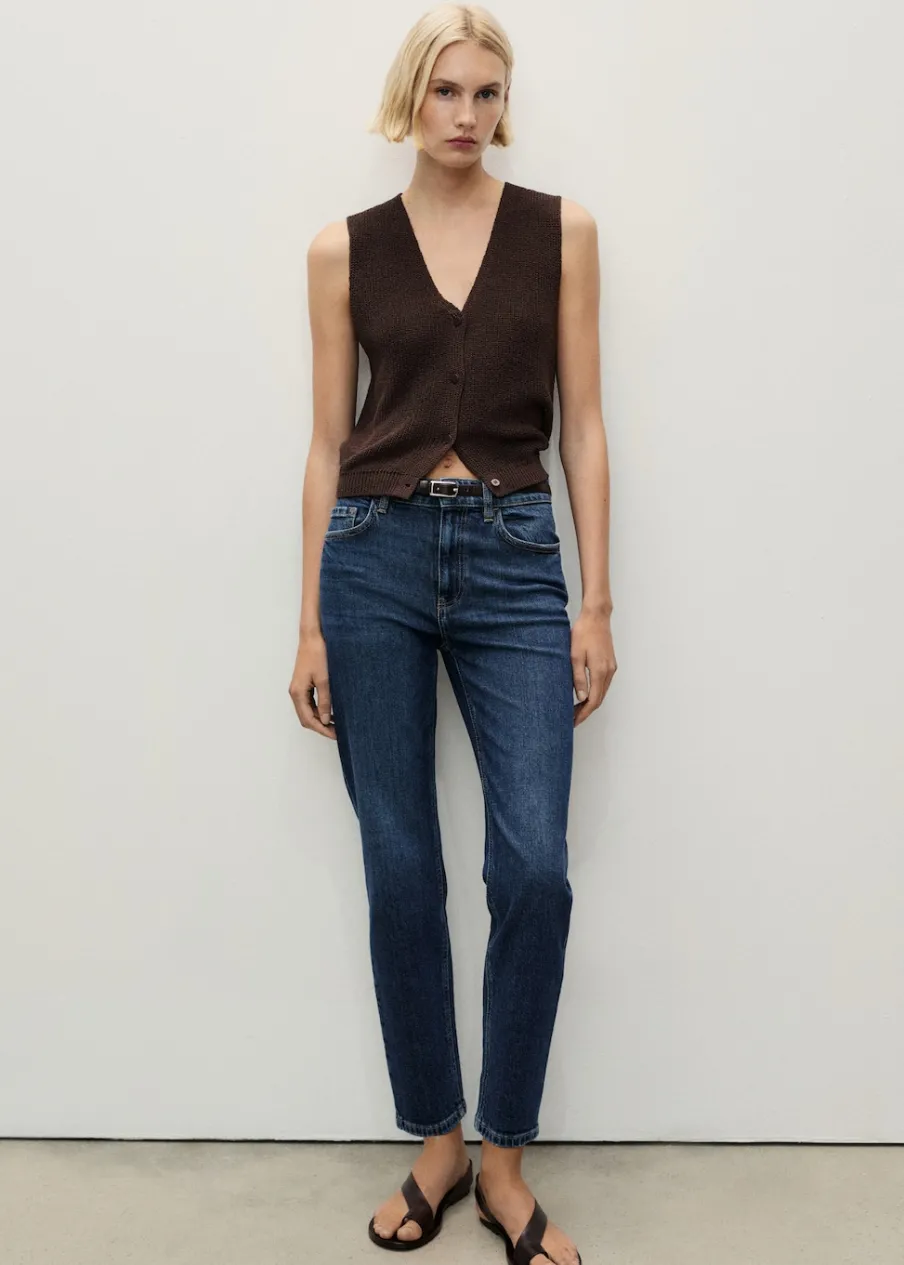 OpisTkanina bawełniana w dżinsowym stylu. Elastyczna tkanina. Mom-fit. Podwyższony stan. Szlufki. Pięć kieszeni. Za…