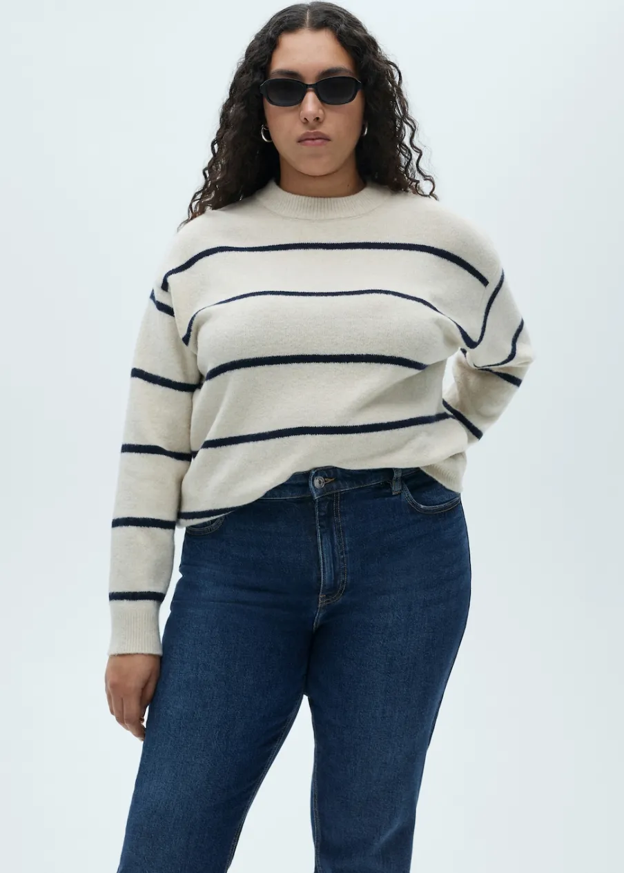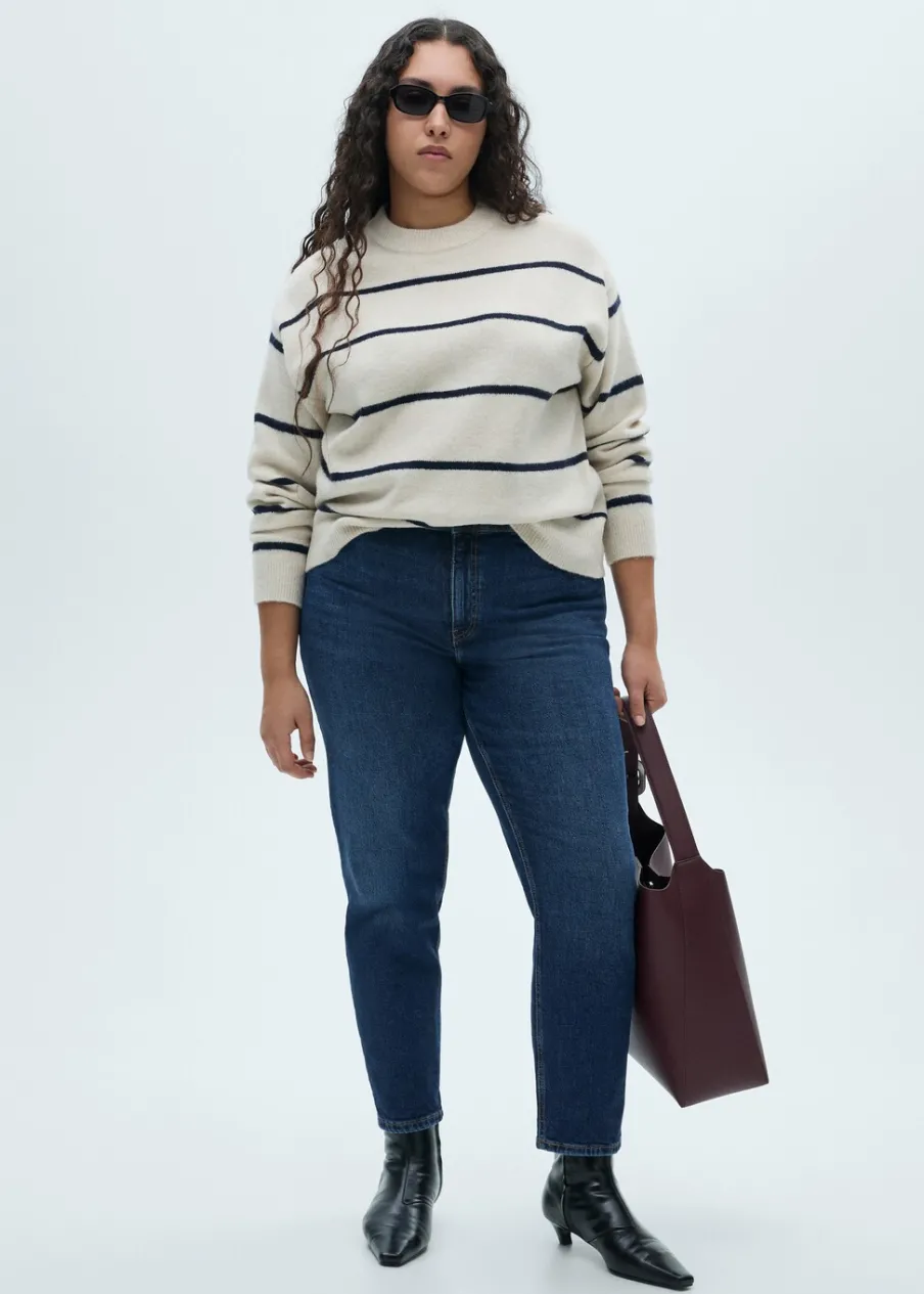 Tkanina bawełniana w dżinsowym stylu. Elastyczna tkanina. Mom-fit. Podwyższony stan. Szlufki. Pięć kieszeni. Zapięcie na suwak i guzik. Dostępne w Plus Size. Długość wewnętrzna 70 cm. Modelka ma 179 cm wzrostu i nosi rozmiar S/36.
