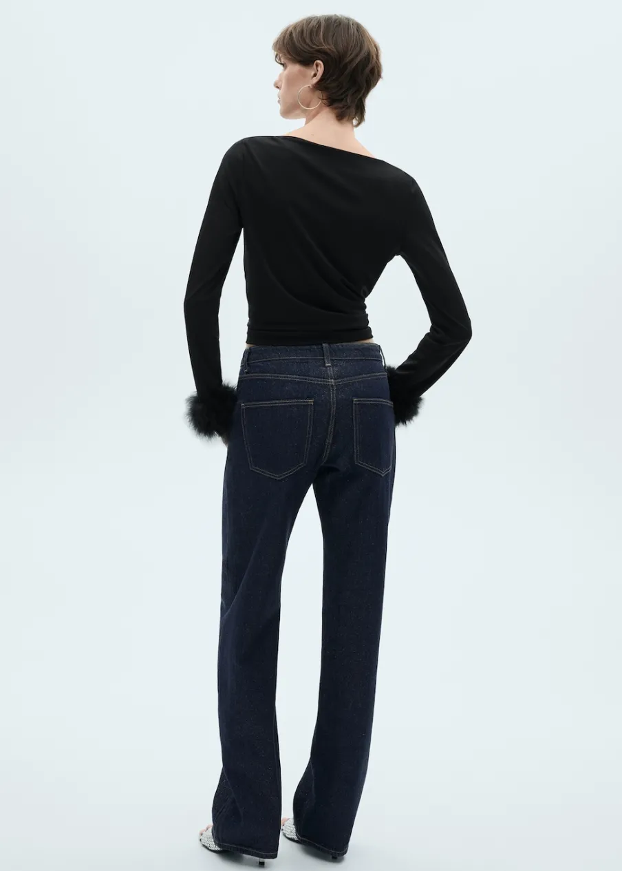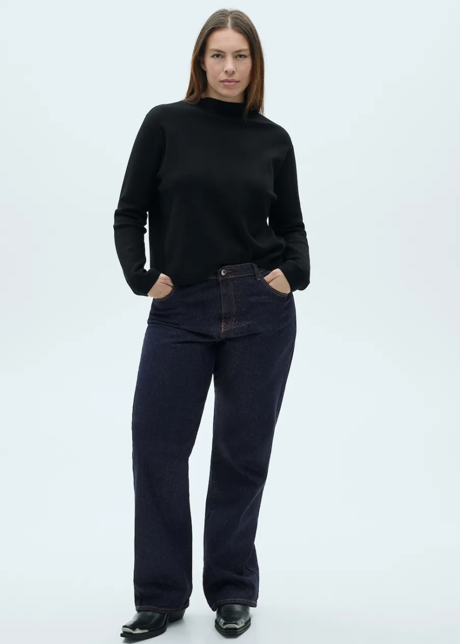 Tkanina bawełniana w dżinsowym stylu. Model prosty. Model długi. Rinse wash. Średni stan. Szlufki. Zapięcie na suwak i guzik. Pięć kieszeni. Błyszczące wykończenie. Kolekcja wizytowa. Modelka ma 177 cm wzrostu i nosi rozmiar S/36.