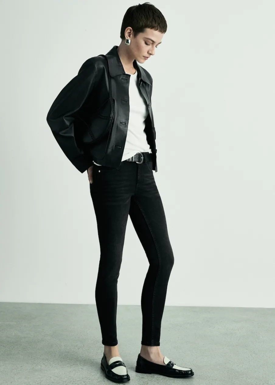Tkanina bawełniana w dżinsowym stylu. Model standardowy. Krój skinny. Model długi. Niski stan. Szlufki. Pięć kieszeni. Zapięcie na suwak i guzik.