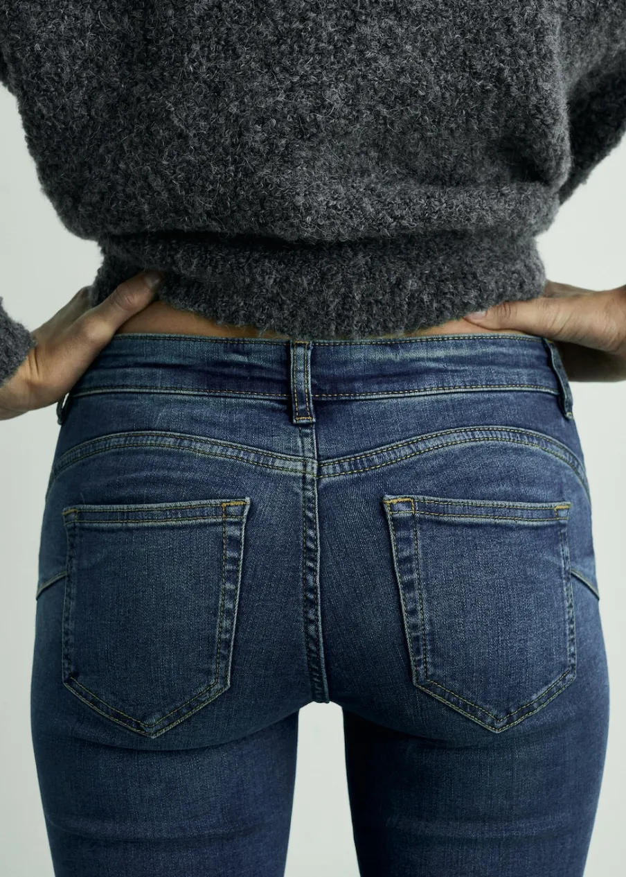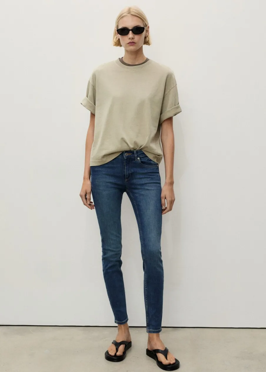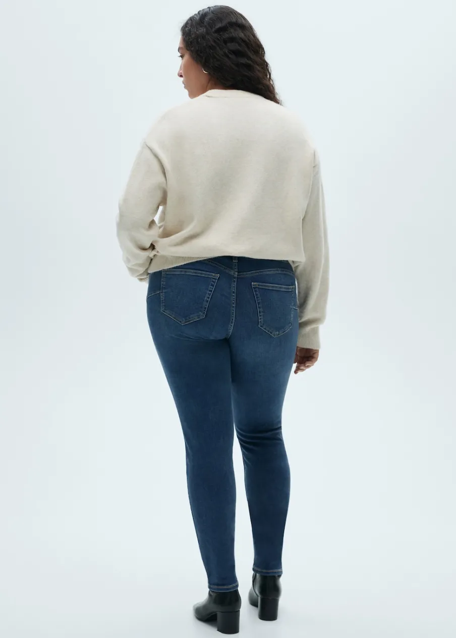 Tkanina bawełniana w dżinsowym stylu. Model standardowy. Krój skinny. Niski stan. Szlufki. Pięć kieszeni. Zapięcie na suwak i guzik. Dostępne w Plus Size.