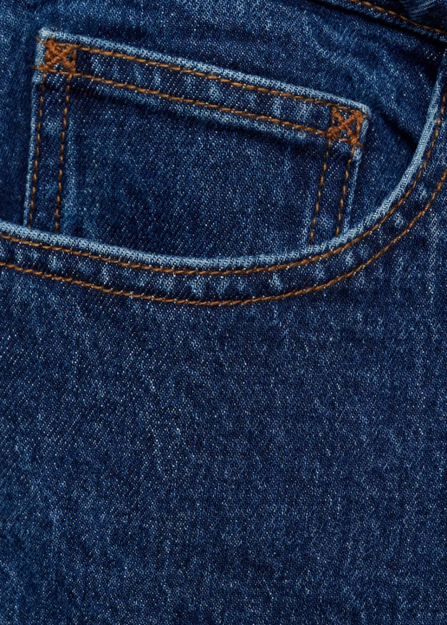 Tkanina bawełniana w dżinsowym stylu. 100% bomull. Model prosty. Model długi. Średni stan. Pięć kieszeni. Zapięcie na suwak i guzik. Powrót do szkoły.