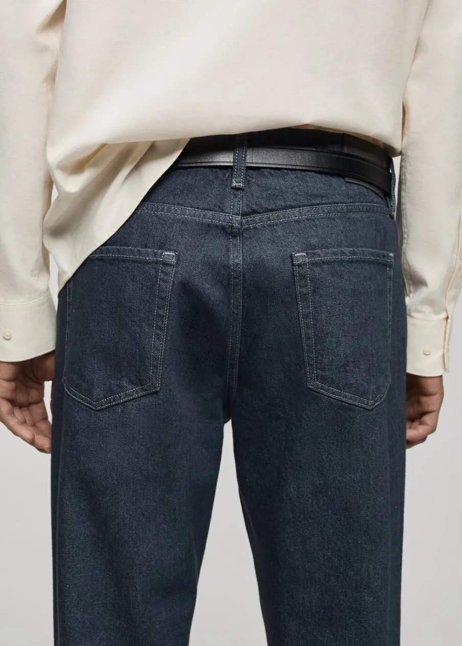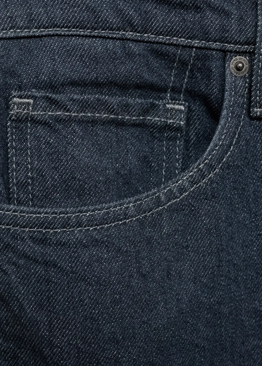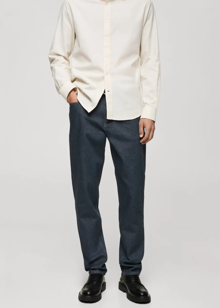 Krój regular. Tkanina bawełniana z recyklingu. Zapięcie na suwak i guzik. Szlufki na pasek. Kieszeń na bilon. Dwie kieszenie nakładane z tyłu. Prosty dół. Model ma 185 cm wzrostu i nosi rozmiar 42. Dwie kieszenie nakładane z przodu.