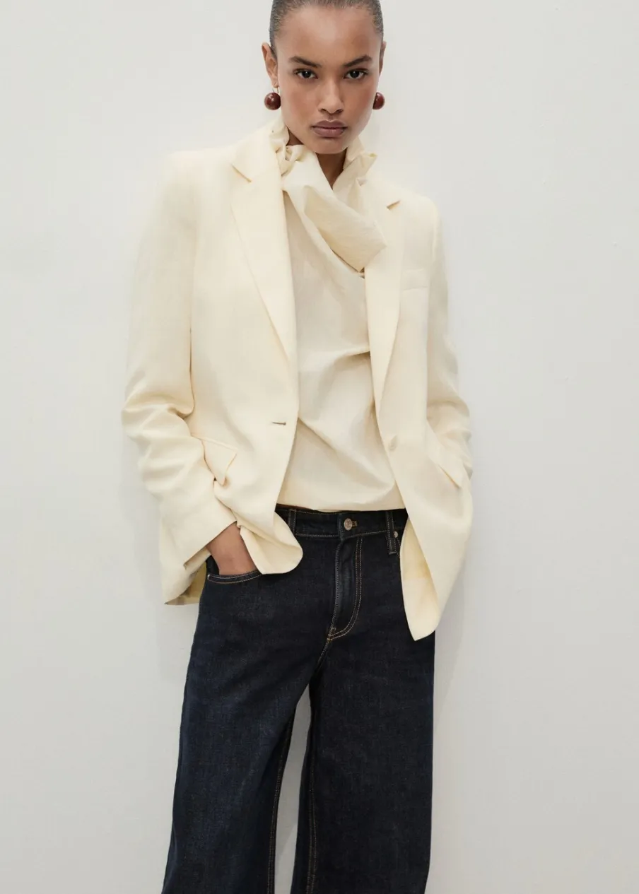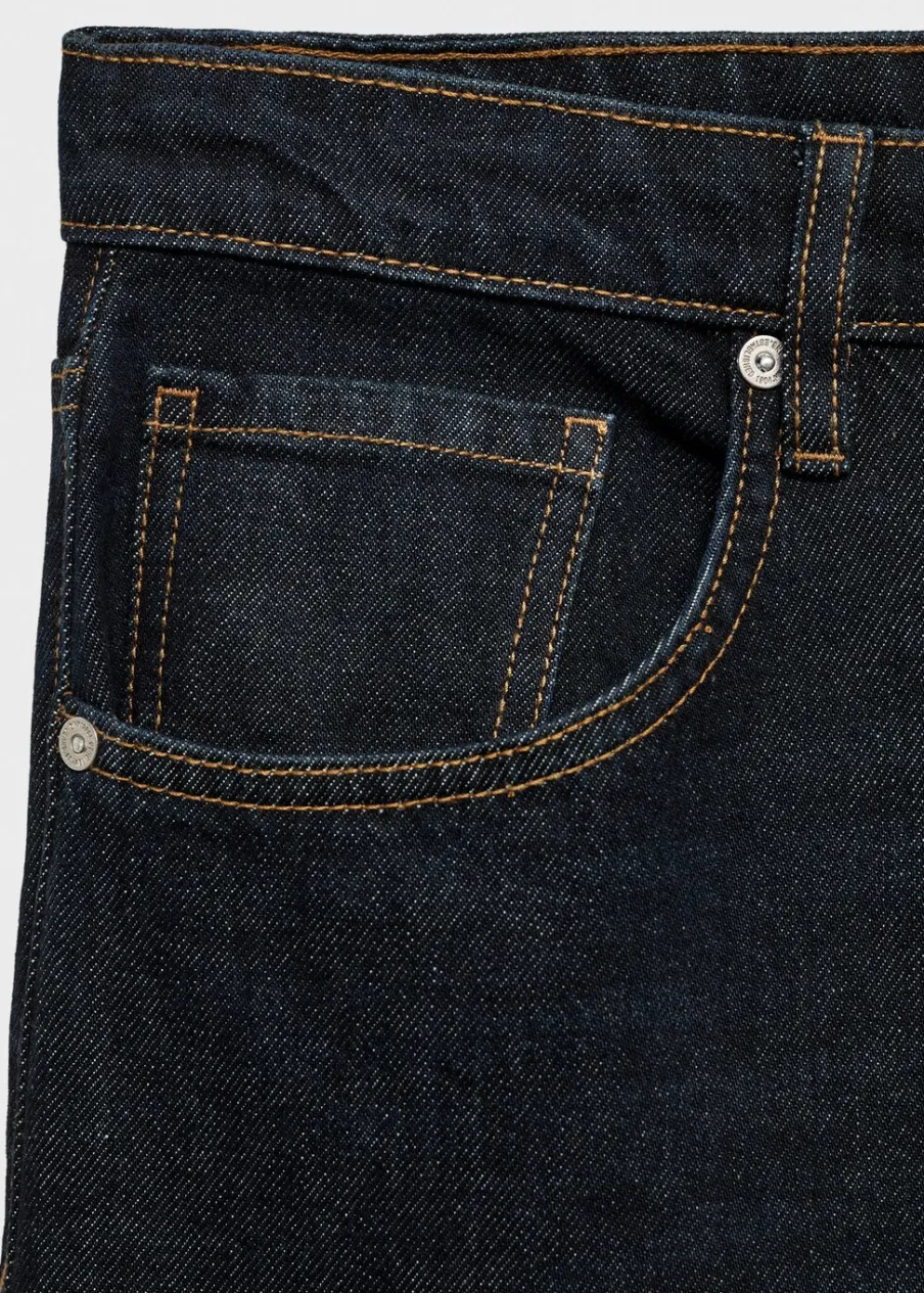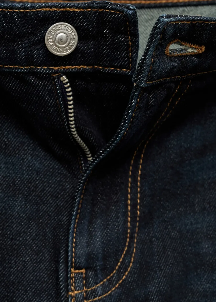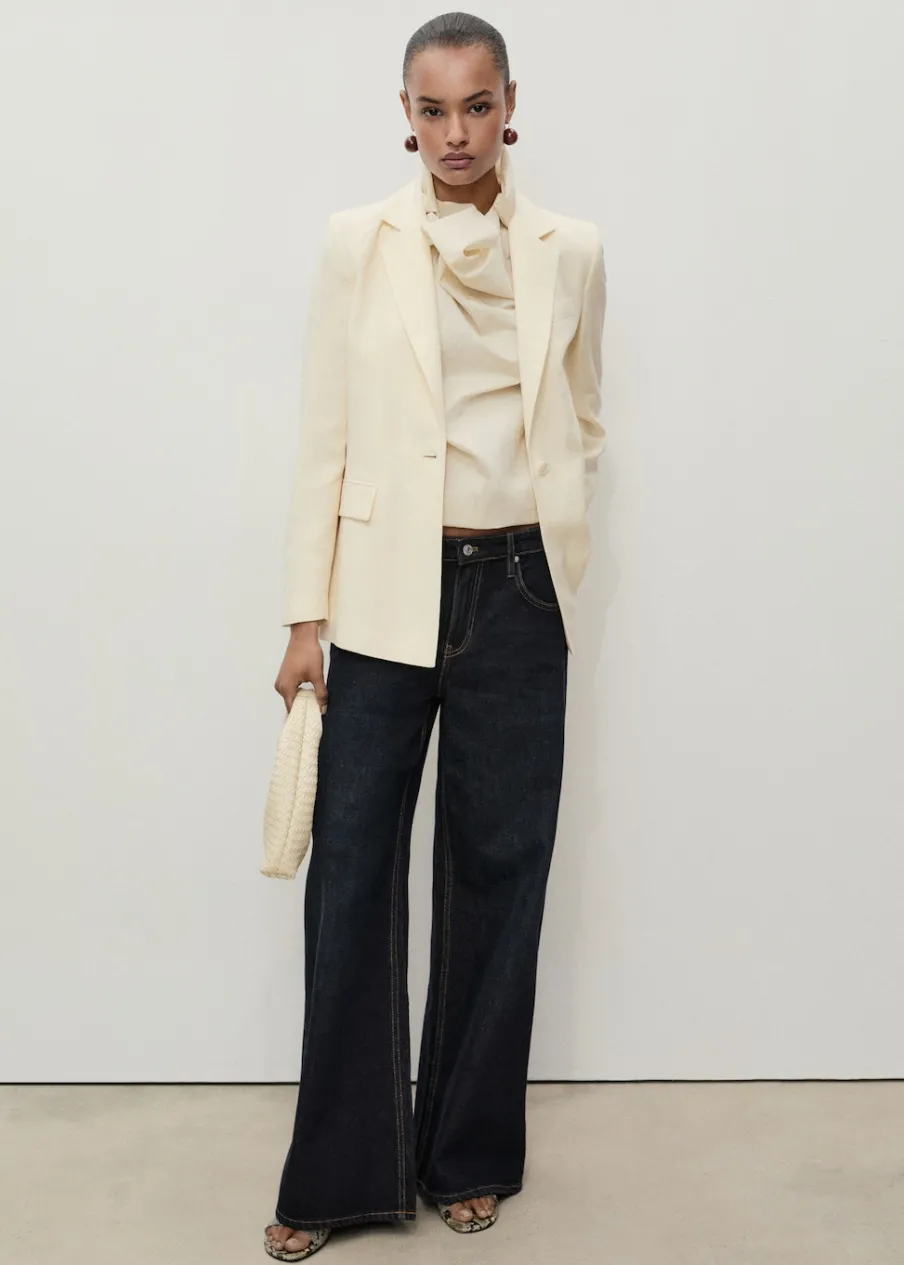Tkanina bawełniana w dżinsowym stylu. Rinse wash. Model długi. Fason wideleg. Niski stan. Szlufki. Pięć kieszeni. Zapięcie na zamek i guzik z przodu. Modelka ma 179 cm wzrostu i nosi rozmiar S/36. Długość wewnętrzna 80,5 cm.