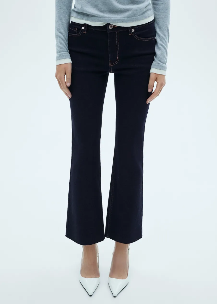Tkanina bawełniana w dżinsowym stylu. Elastyczna tkanina. Rozszerzany model. Styl flare. Deseń crop. Rinse wash. Podwyższony stan. Szlufki. Pięć kieszeni. Zapięcie na suwak i guzik. Dostępne w Plus Size. Modelka ma 178 cm wzrostu i nosi rozmiar S/36. Długość wewnętrzna 65 cm.