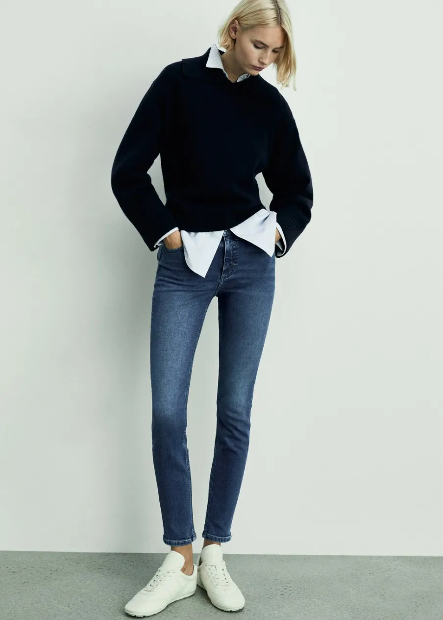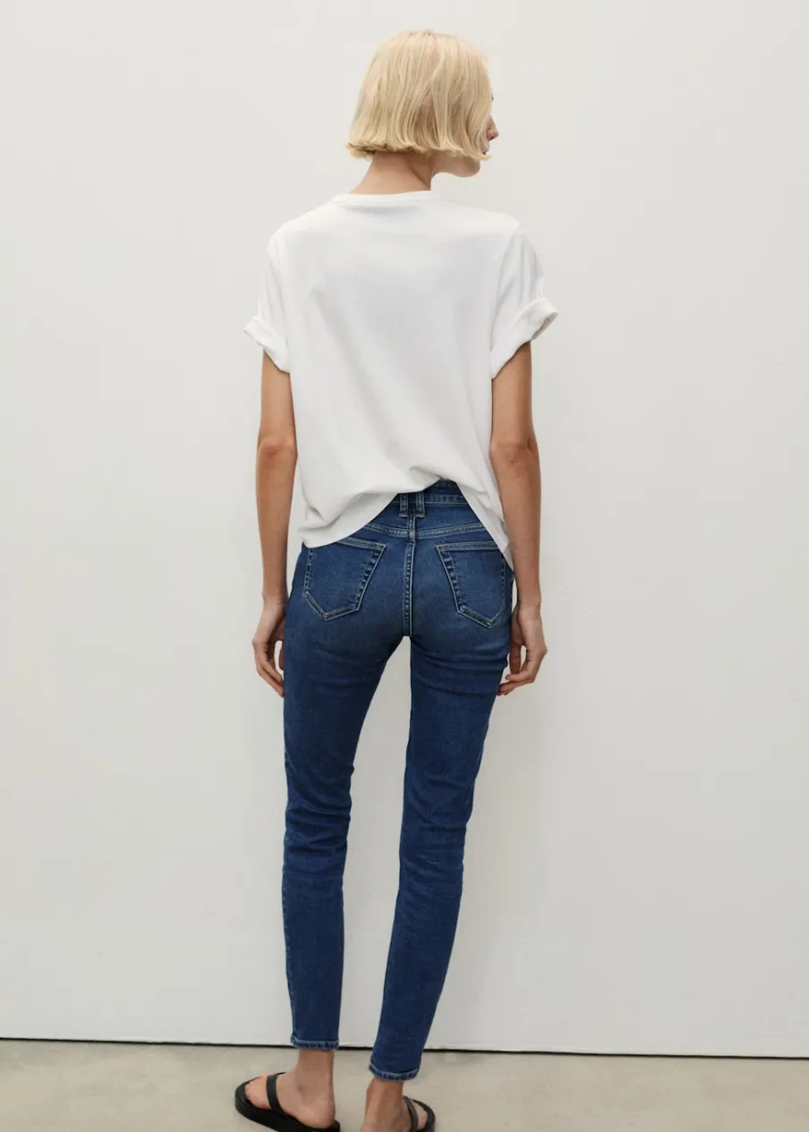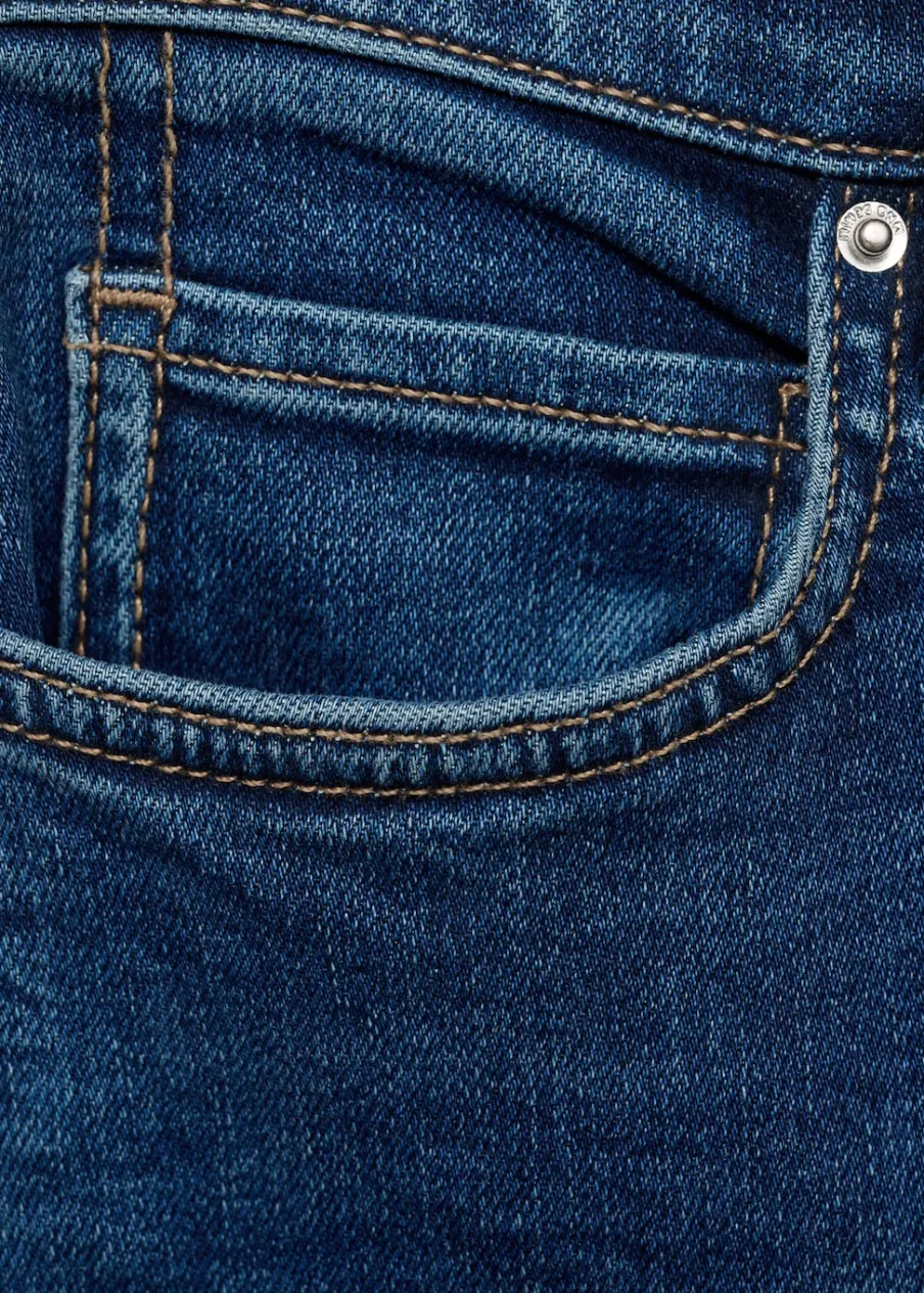 Tkanina bawełniana w dżinsowym stylu. Średnia wielkość. Średni stan. Krój skinny. Model długi. Pięć kieszeni. Szlufki. Zapięcie na suwak i guzik. Ankle brace. Dostępne w Plus Size. Modelka ma 179 cm wzrostu i nosi rozmiar S/36. Długość wewnętrzna 68 cm.