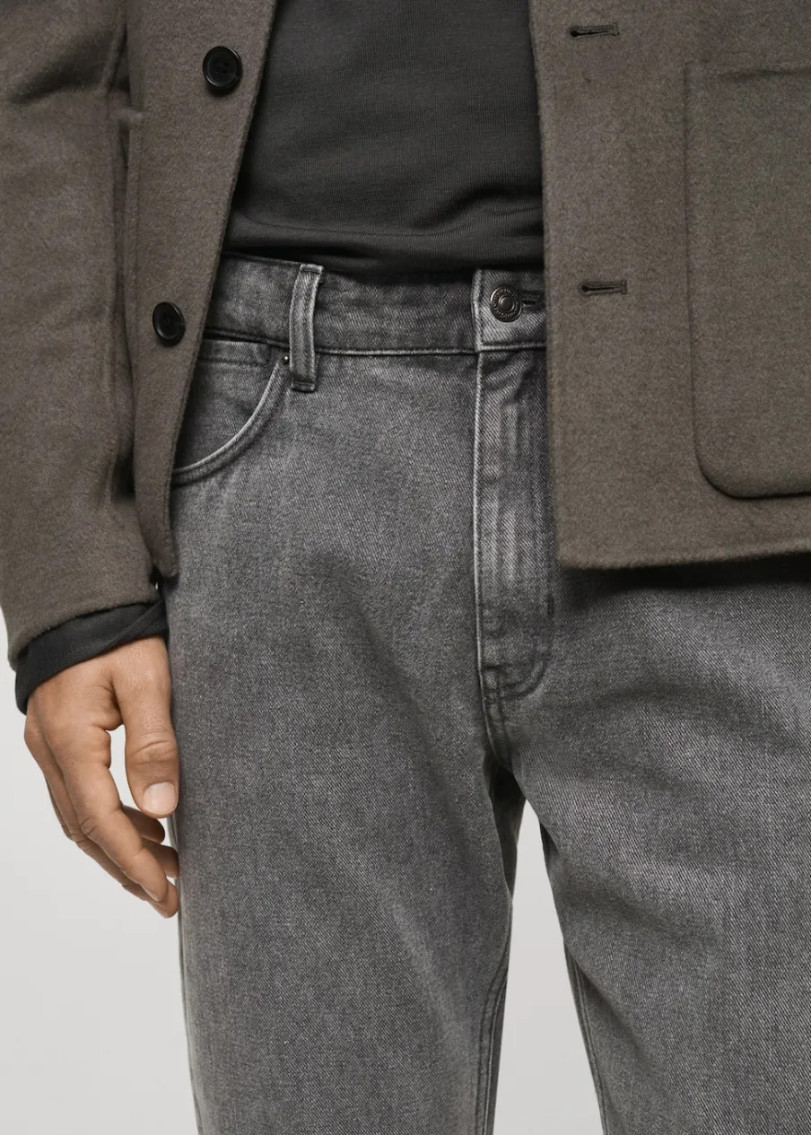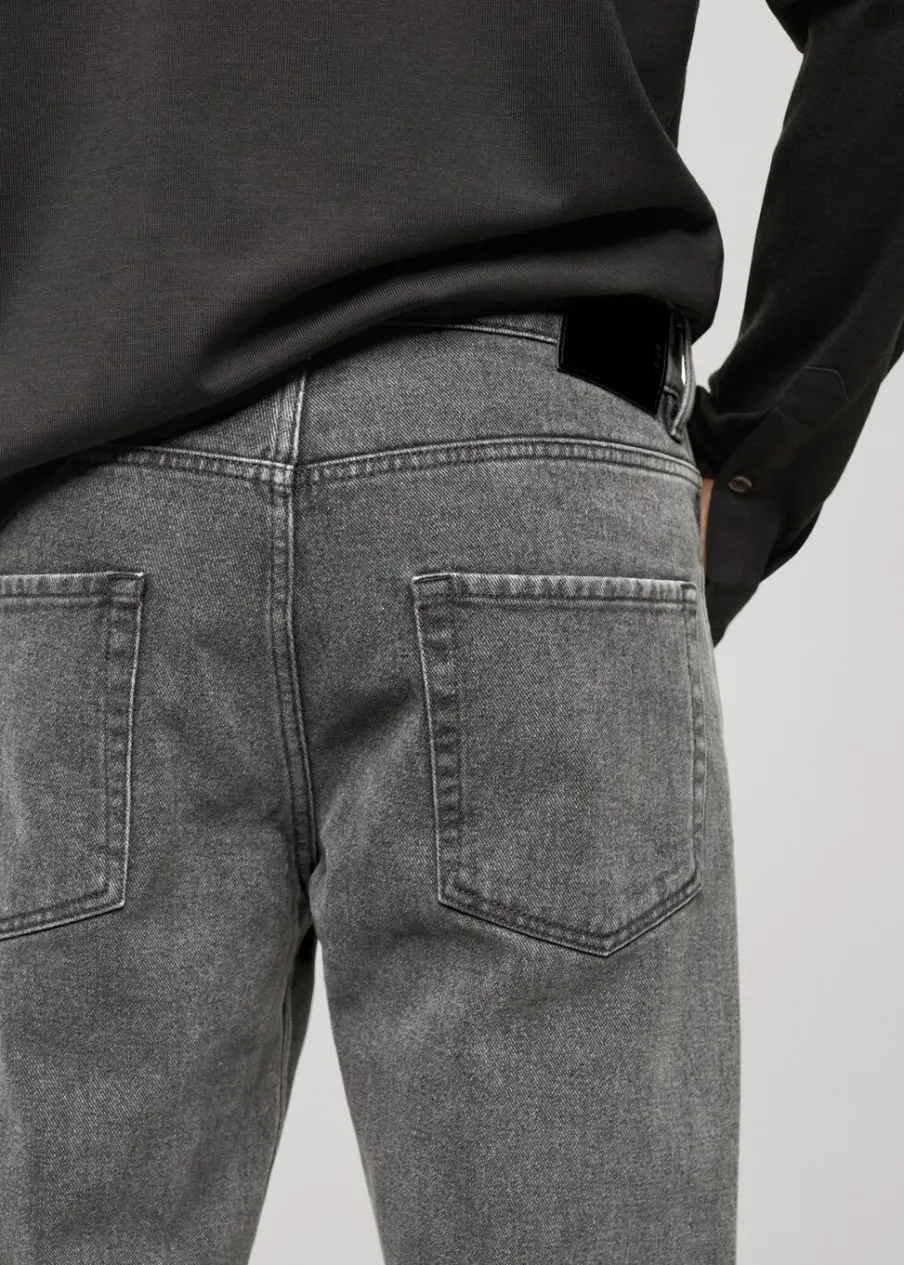 Kolekcja Selection. Slim-fit. Tkanina bawełniana. Kolor ciemnoszary z efektem sprania. Szlufki na pasek. Kieszeń na bilon. Zapięcie na suwak i guzik. Dwie kieszenie nakładane z tyłu. Model ma 185 cm wzrostu i nosi rozmiar 42. Dwie wpuszczene kieszenie z przodu.