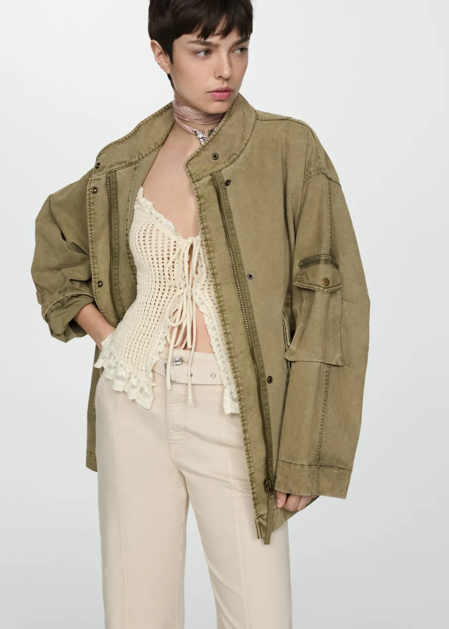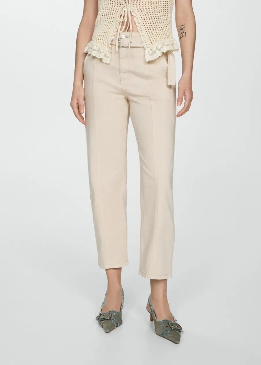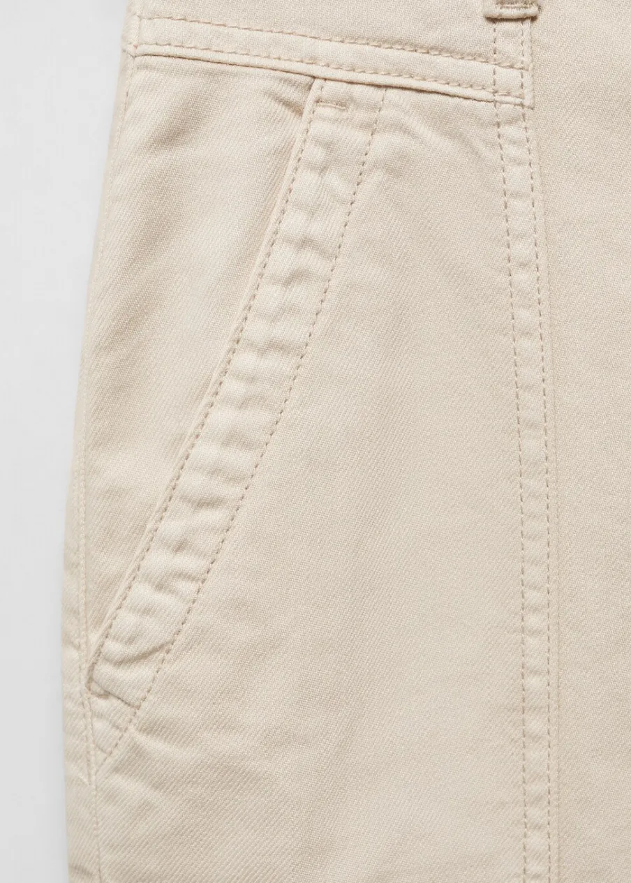 Tkanina bawełniana w dżinsowym stylu. Model prosty. Średni stan. Fason slouchy. Zapięcie na suwak i guzik. Szlufki. Odpinany pasek. Dwie kieszenie boczne. Dwie kieszenie nakładane z tyłu. Ozdobne szwy.