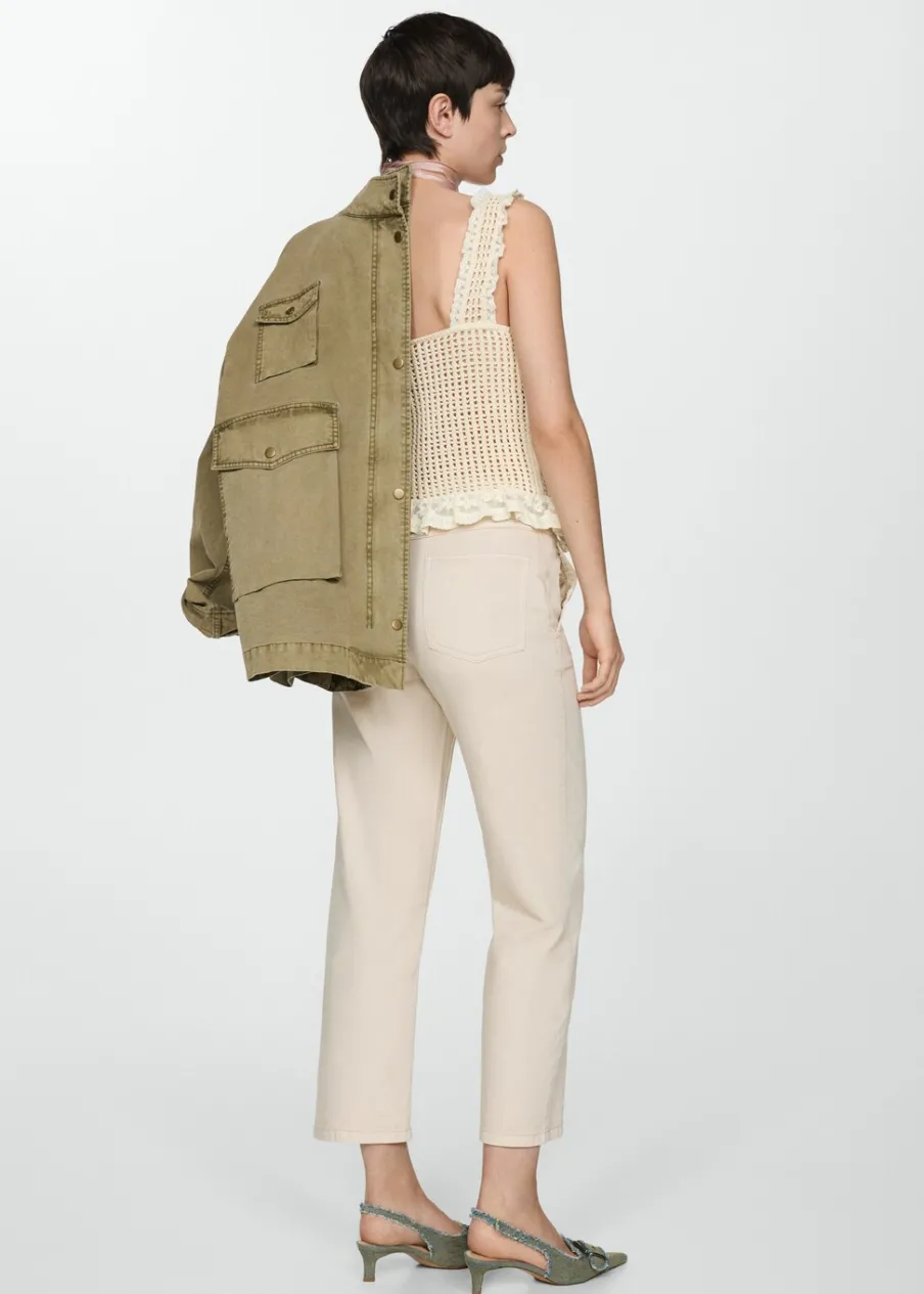 OpisTkanina bawełniana w dżinsowym stylu. Model prosty. Średni stan. Fason slouchy. Zapięcie na suwak i guzik. Szluf…