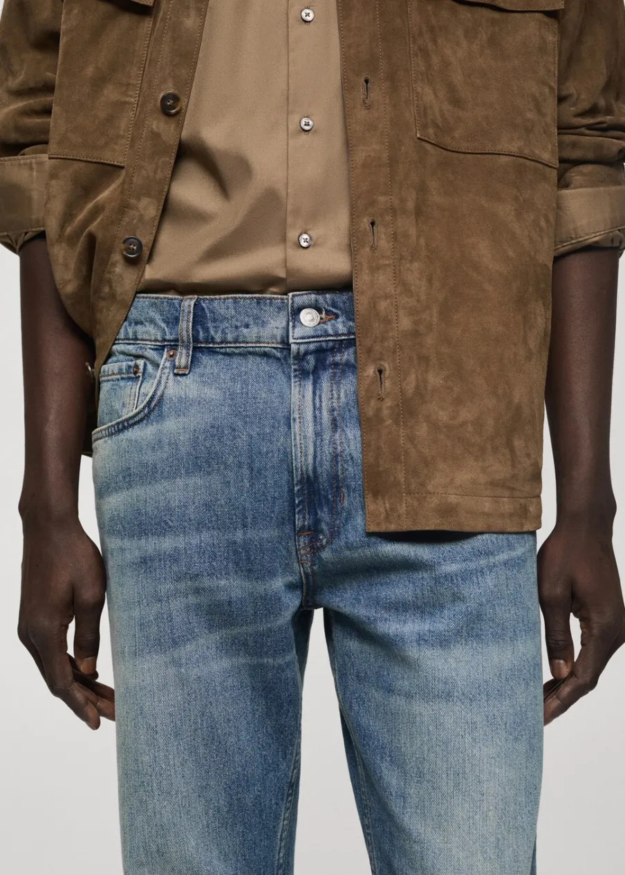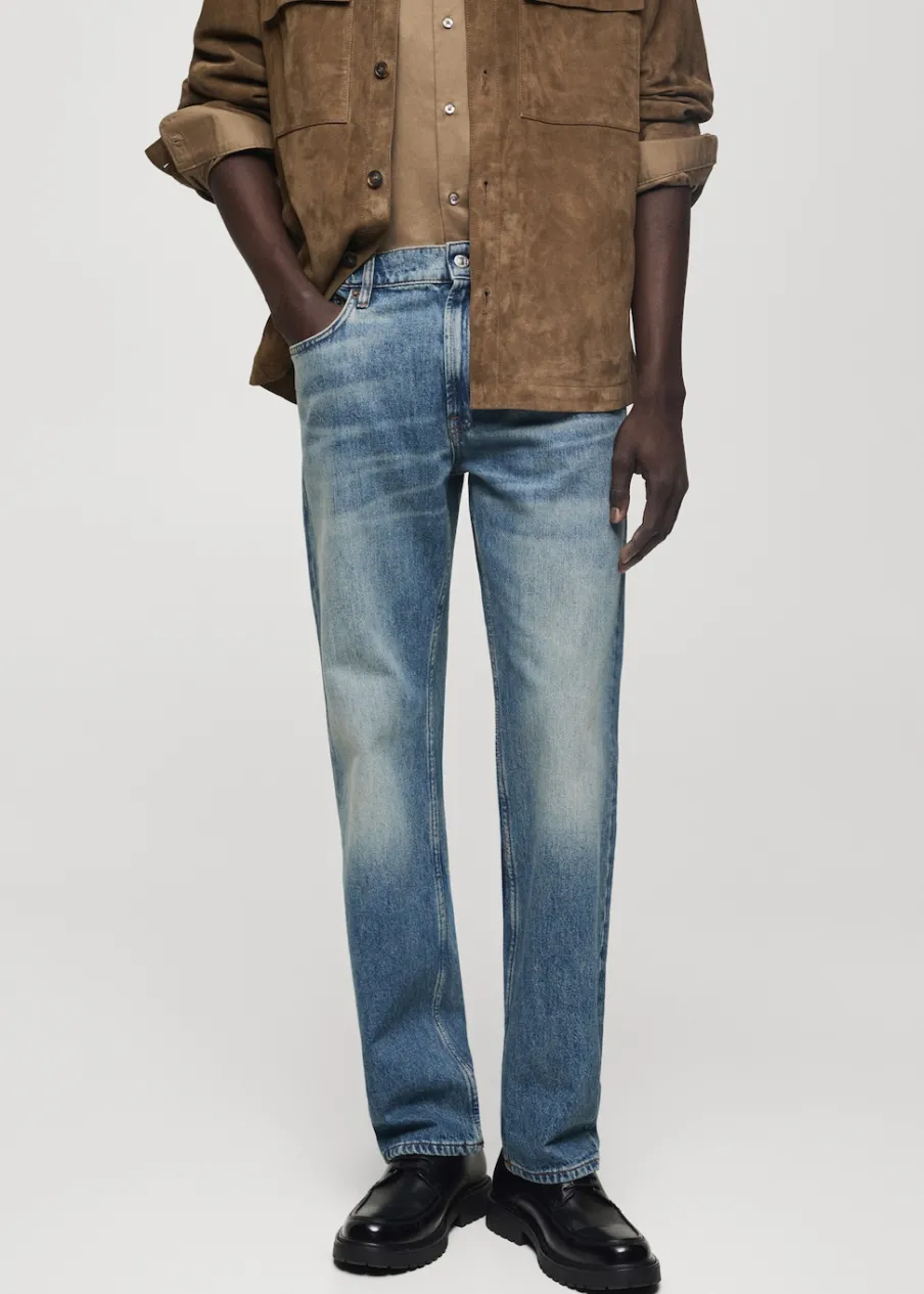 Straight-fit. Średnie spranie z wytarciem. Zapięcie na guzik. Szlufki na pasek. Kieszenie boczne. Kieszeń na bilon. Model ma 190 cm wzrostu i nosi rozmiar 42. Kampania z Antoinem Griezmannem.