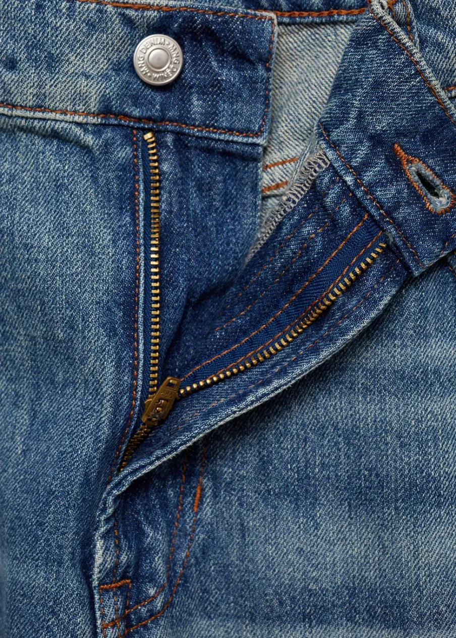 OpisStraight-fit. Średnie spranie z wytarciem. Zapięcie na guzik. Szlufki na pasek. Kieszenie boczne. Kieszeń na bilo…