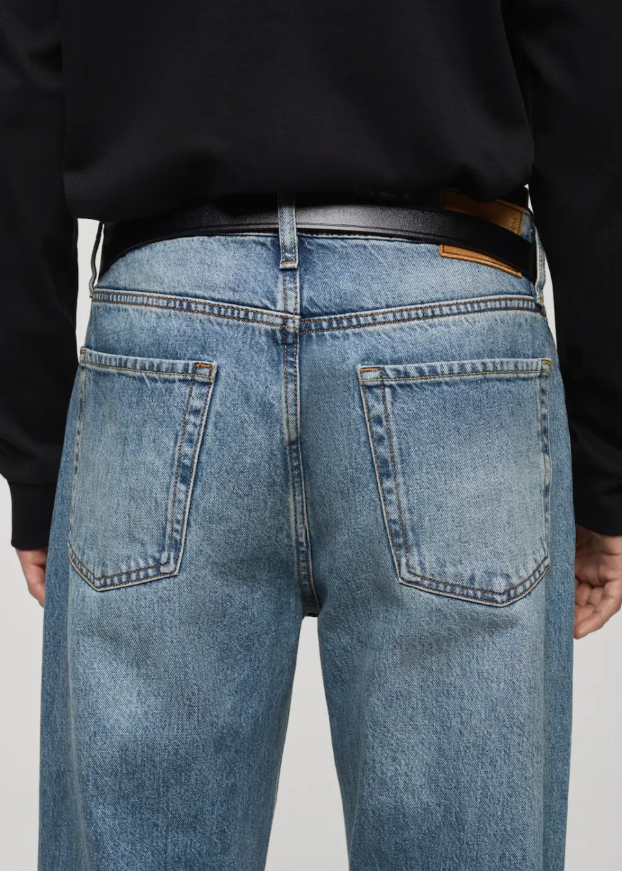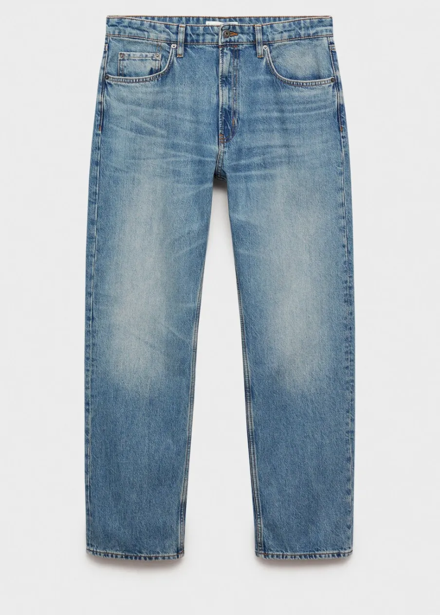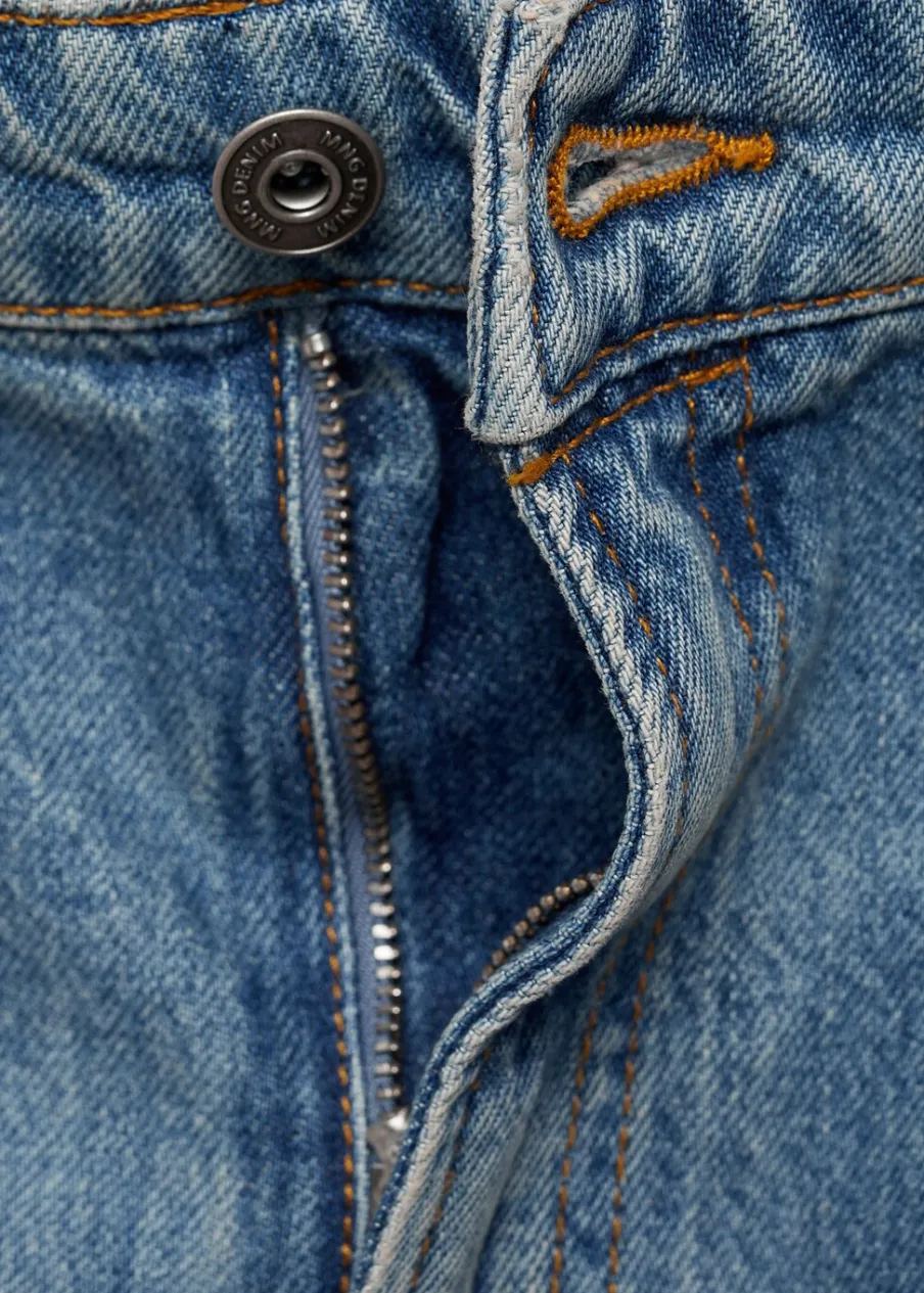 Straight-fit. Spranie na jasno. Średni stan. Tkanina z 100% bawełny. Zapięcie na zamek i guzik z przodu. Szlufki na pasek. Dwie kieszenie z przodu. Kieszonka na monety na wysokości biodra z tyłu. Dwie kieszenie nakładane z tyłu. Model ma 190 cm wzrostu i nosi rozmiar 42.