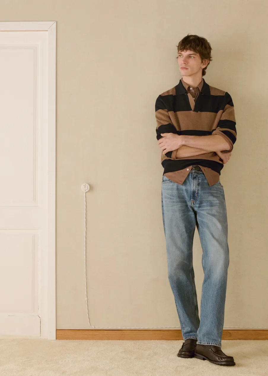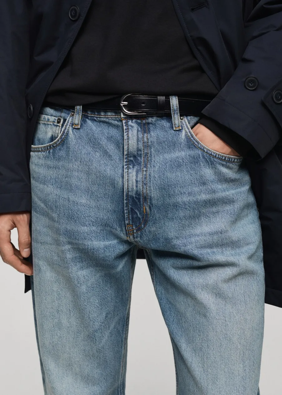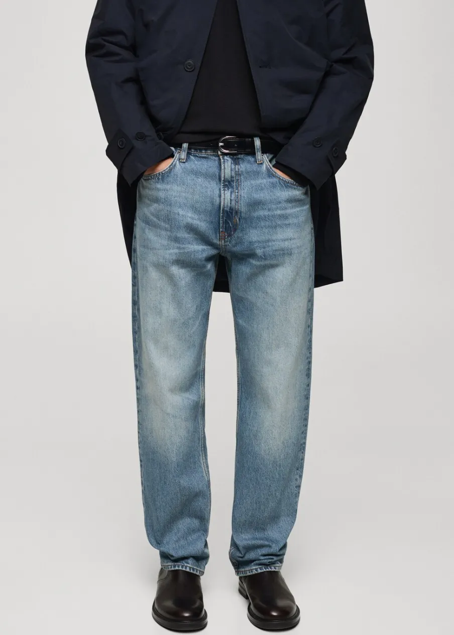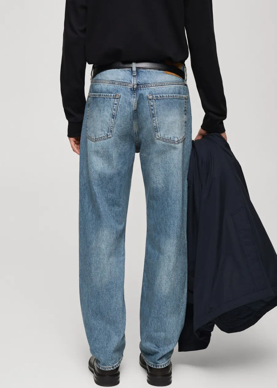 Straight-fit. Spranie na jasno. Średni stan. Tkanina z 100% bawełny. Zapięcie na zamek i guzik z przodu. Szlufki na pasek. Dwie kieszenie z przodu. Kieszonka na monety na wysokości biodra z tyłu. Dwie kieszenie nakładane z tyłu. Model ma 190 cm wzrostu i nosi rozmiar 42.