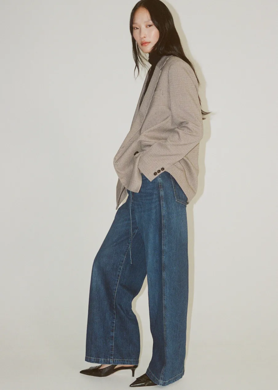 OpisTkanina bawełniana w dżinsowym stylu. Fason wideleg. Model długi. Średni stan. Szlufki. Regulowany pasek. Pięć…