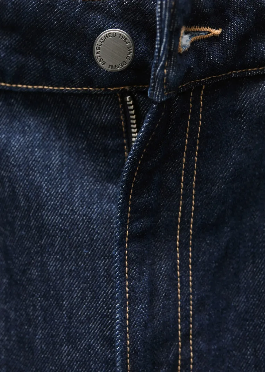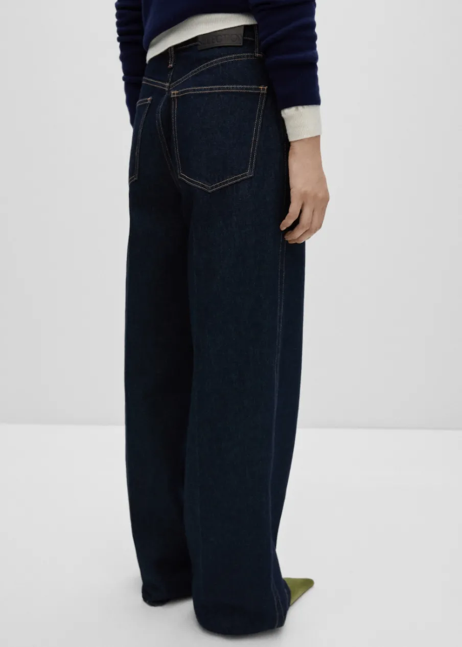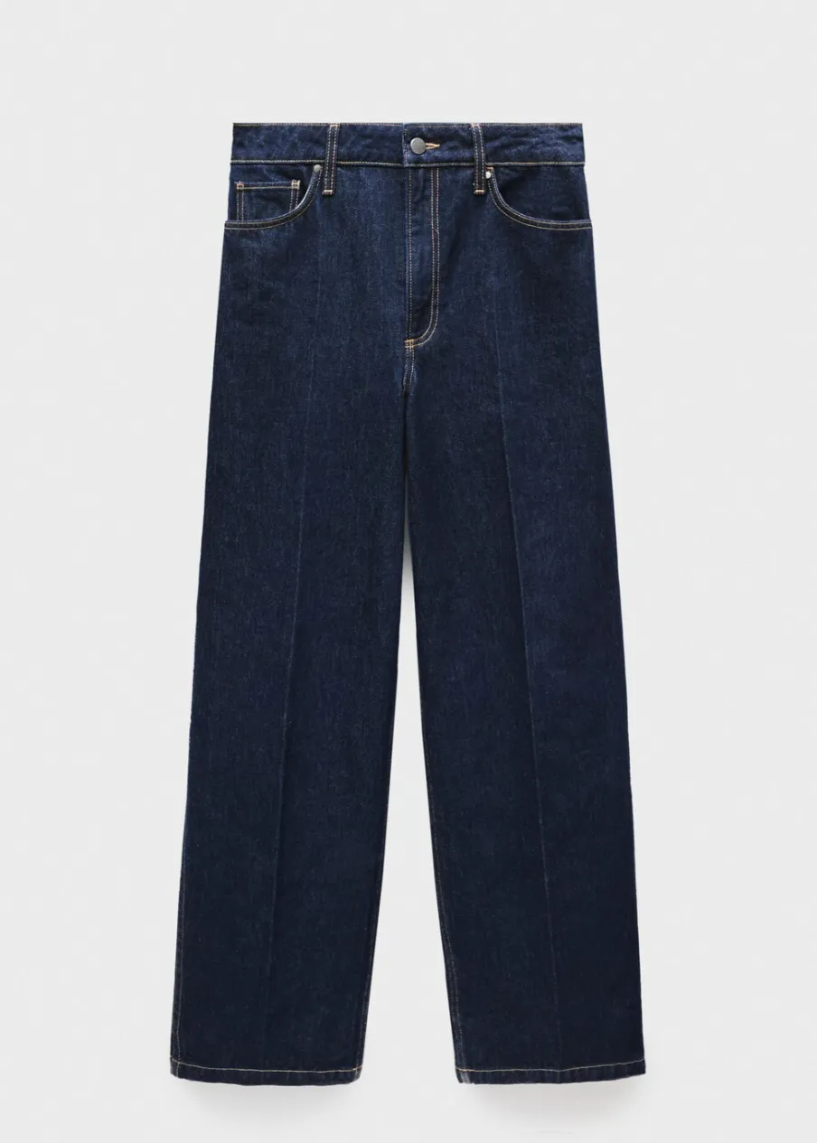 Model długi. Podwyższony stan. Rinse wash. Szlufki. Zapięcie na zamek i guzik z przodu. Detal z zakładkami. Kolekcja Selection. Modelka ma 175 cm wzrostu i nosi rozmiar S/36. Tkanina bawełniana w dżinsowym stylu. Fason wideleg. Pięć kieszeni.