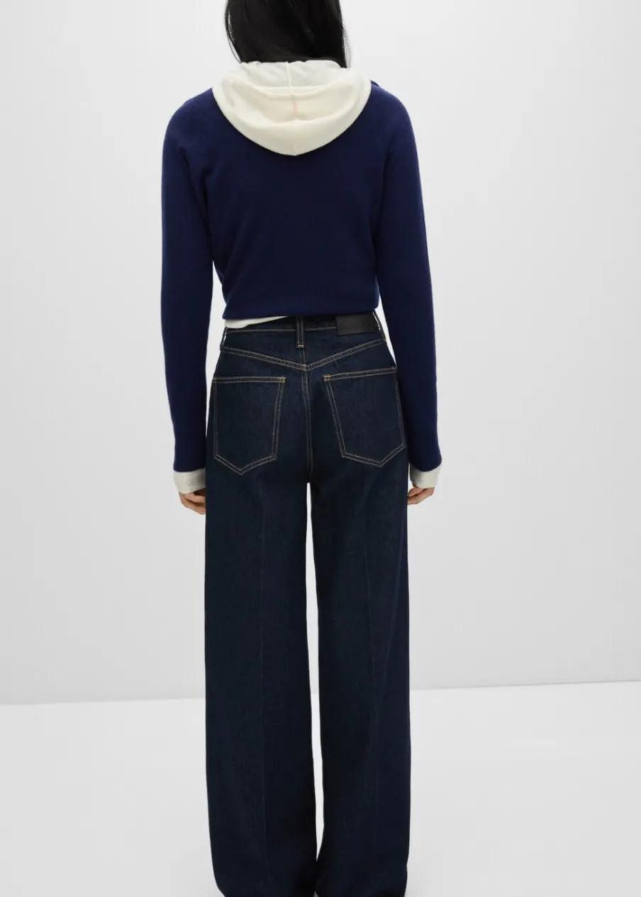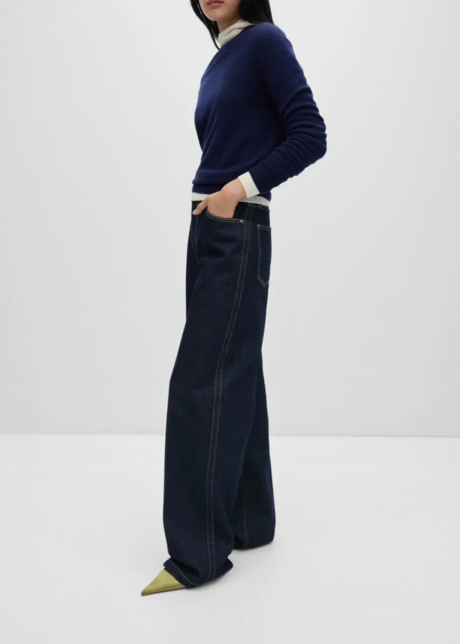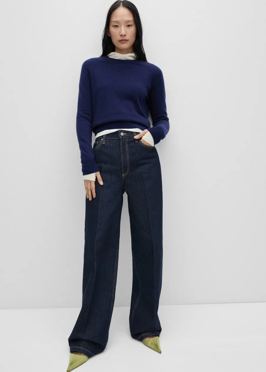 Model długi. Podwyższony stan. Rinse wash. Szlufki. Zapięcie na zamek i guzik z przodu. Detal z zakładkami. Kolekcja Selection. Modelka ma 175 cm wzrostu i nosi rozmiar S/36. Tkanina bawełniana w dżinsowym stylu. Fason wideleg. Pięć kieszeni.