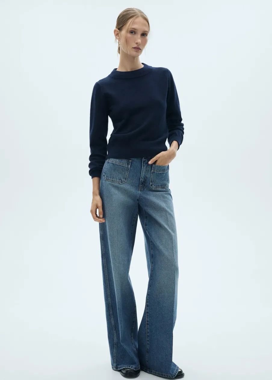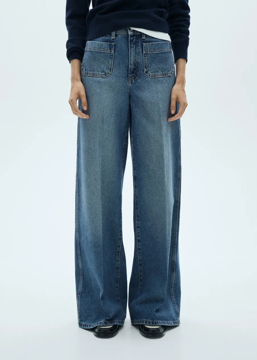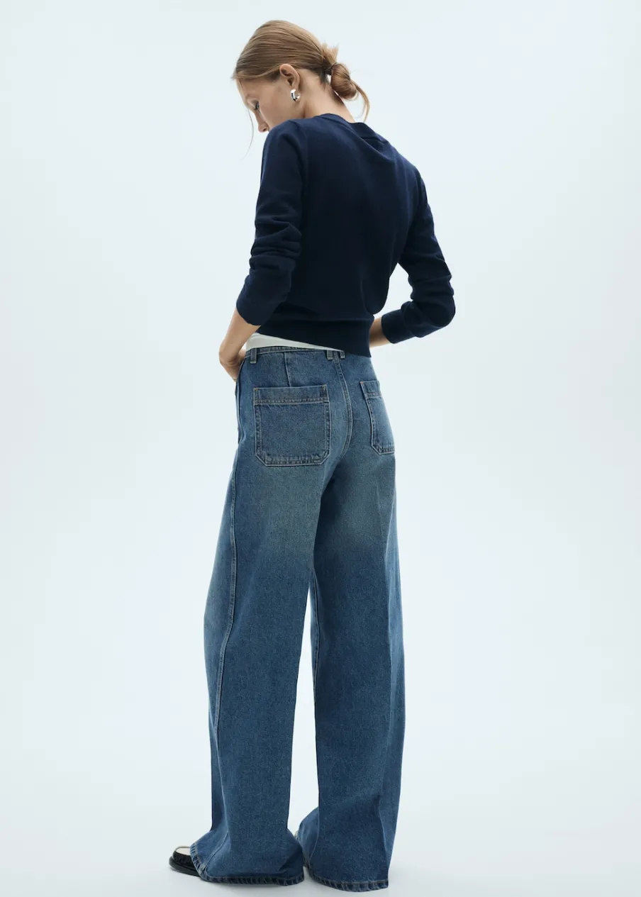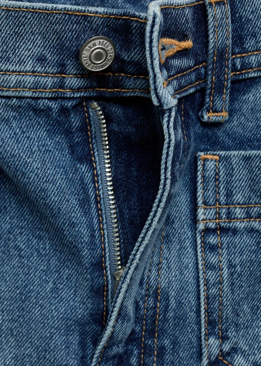 Tkanina bawełniana w dżinsowym stylu. Fason wideleg. Podwyższony stan. Szlufki. Dwie kieszenie nakładane z przodu. Dwie kieszenie nakładane z tyłu. Zapięcie na suwak i guzik. Pełna długość. Modelka ma 177 cm wzrostu i nosi rozmiar S/36. Długość wewnętrzna 85 cm.