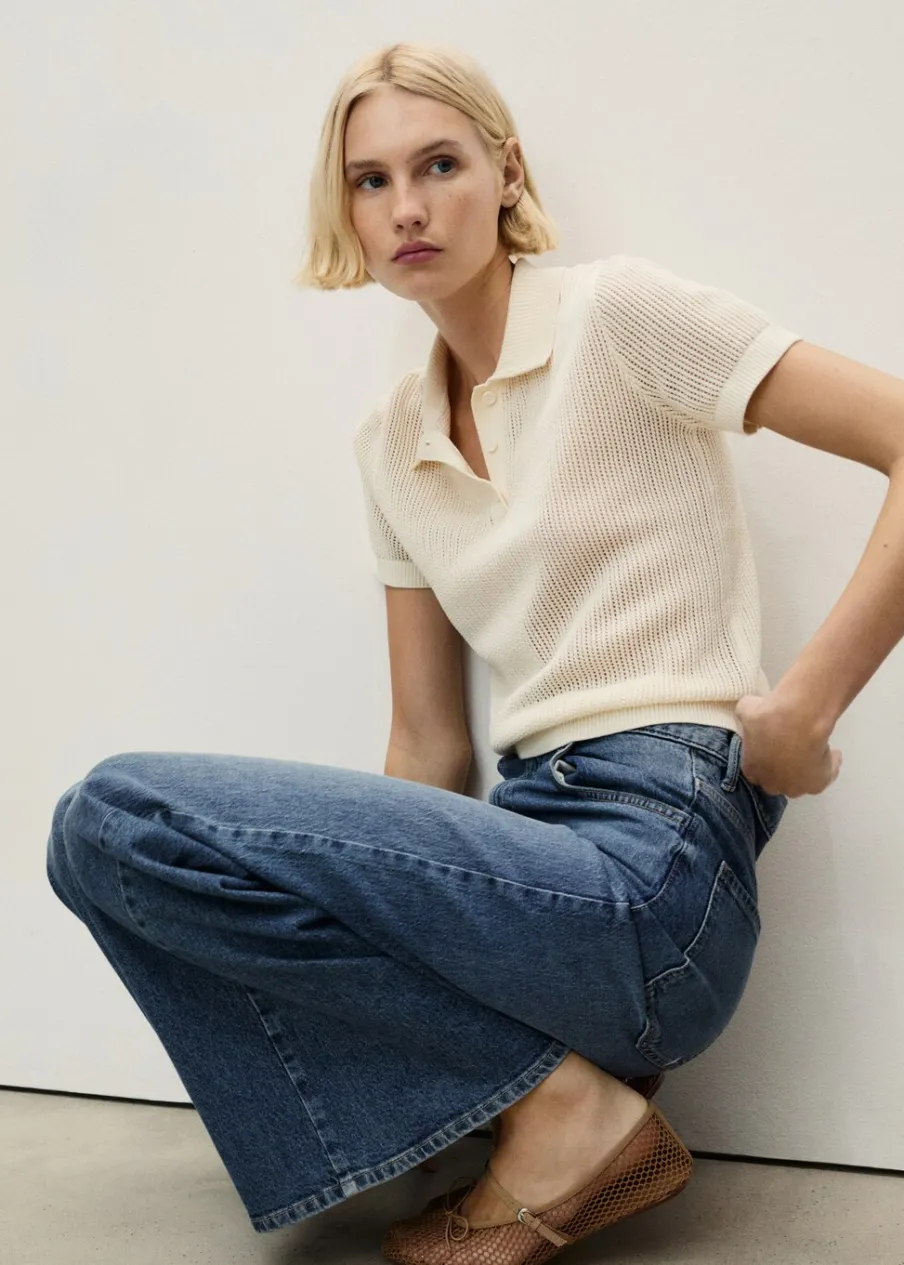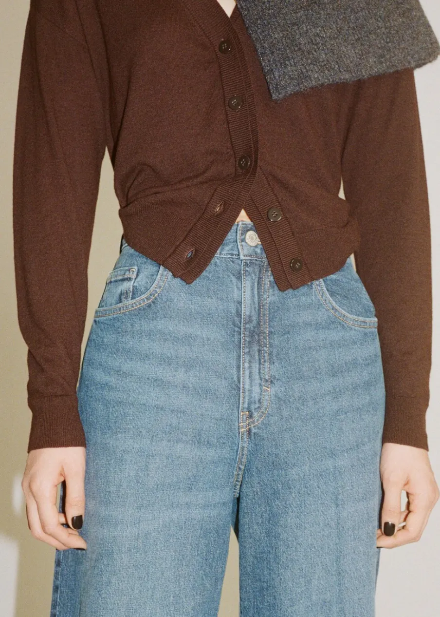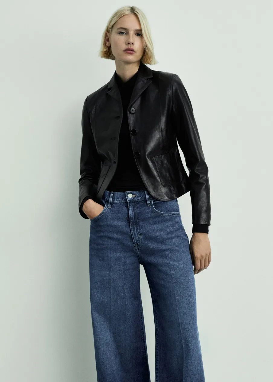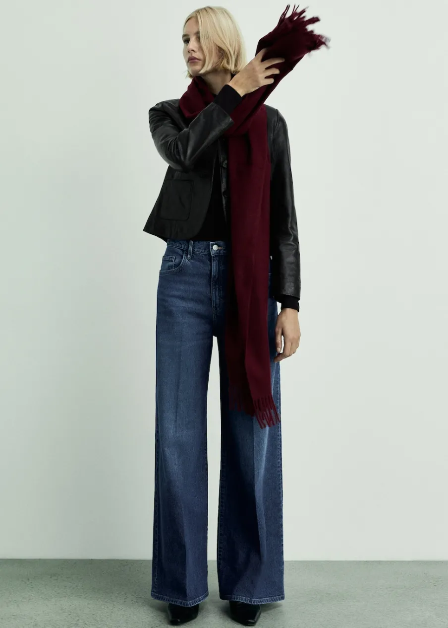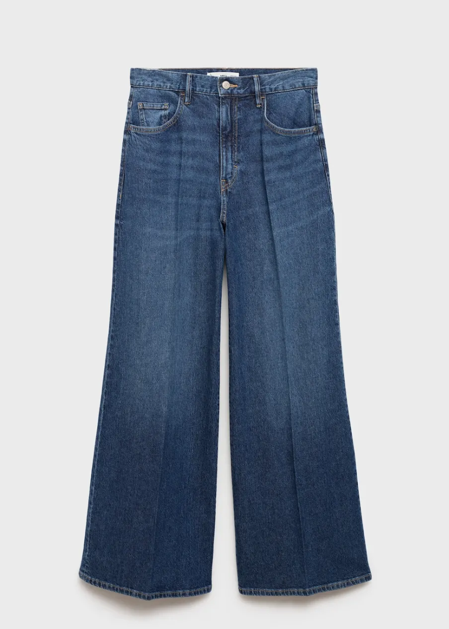 Tkanina bawełniana w dżinsowym stylu. Model długi. Fason wideleg. Podwyższony stan. Szlufki. Pięć kieszeni. Zapięcie na zamek i guzik z przodu. Modelka ma 179 cm wzrostu i nosi rozmiar S/36. Długość wewnętrzna 83 cm.