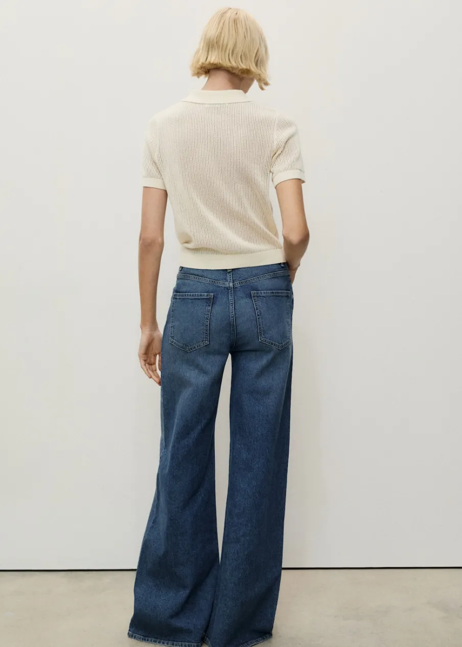 OpisTkanina bawełniana w dżinsowym stylu. Model długi. Fason wideleg. Podwyższony stan. Szlufki. Pięć kieszeni. Za…