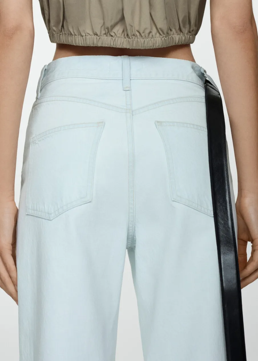 OpisTkanina bawełniana w dżinsowym stylu. Model długi. Fason wideleg. Podwyższony stan. Szlufki. Dwie kieszenie z pr…