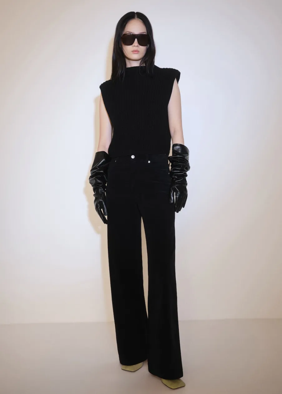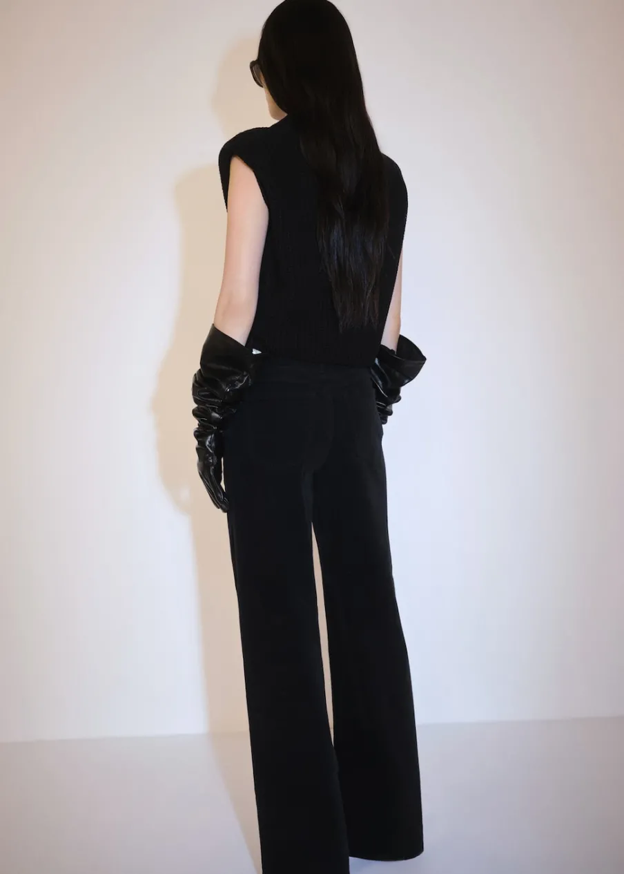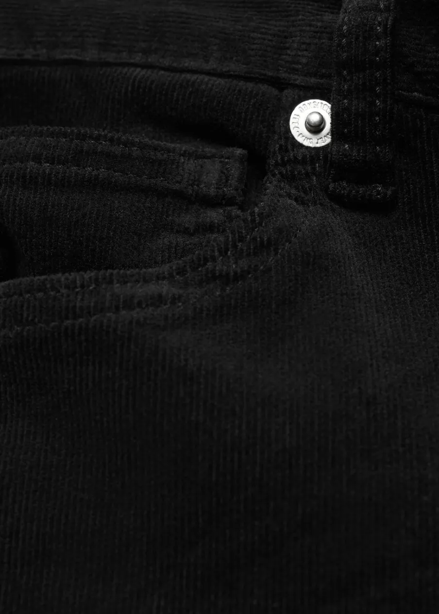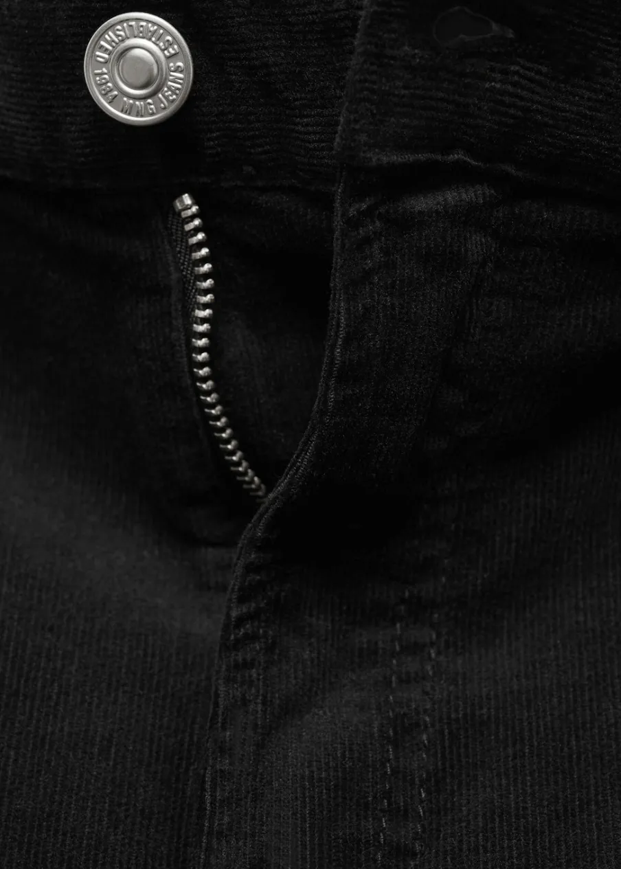 Średni stan. Długość wewnętrzna 83 cm. Pięć kieszeni. Zapięcie na suwak i guzik. Modelka ma 175 cm wzrostu i nosi rozmiar S/36. Sztruksowa tkanina. Fason wideleg. Szlufki.