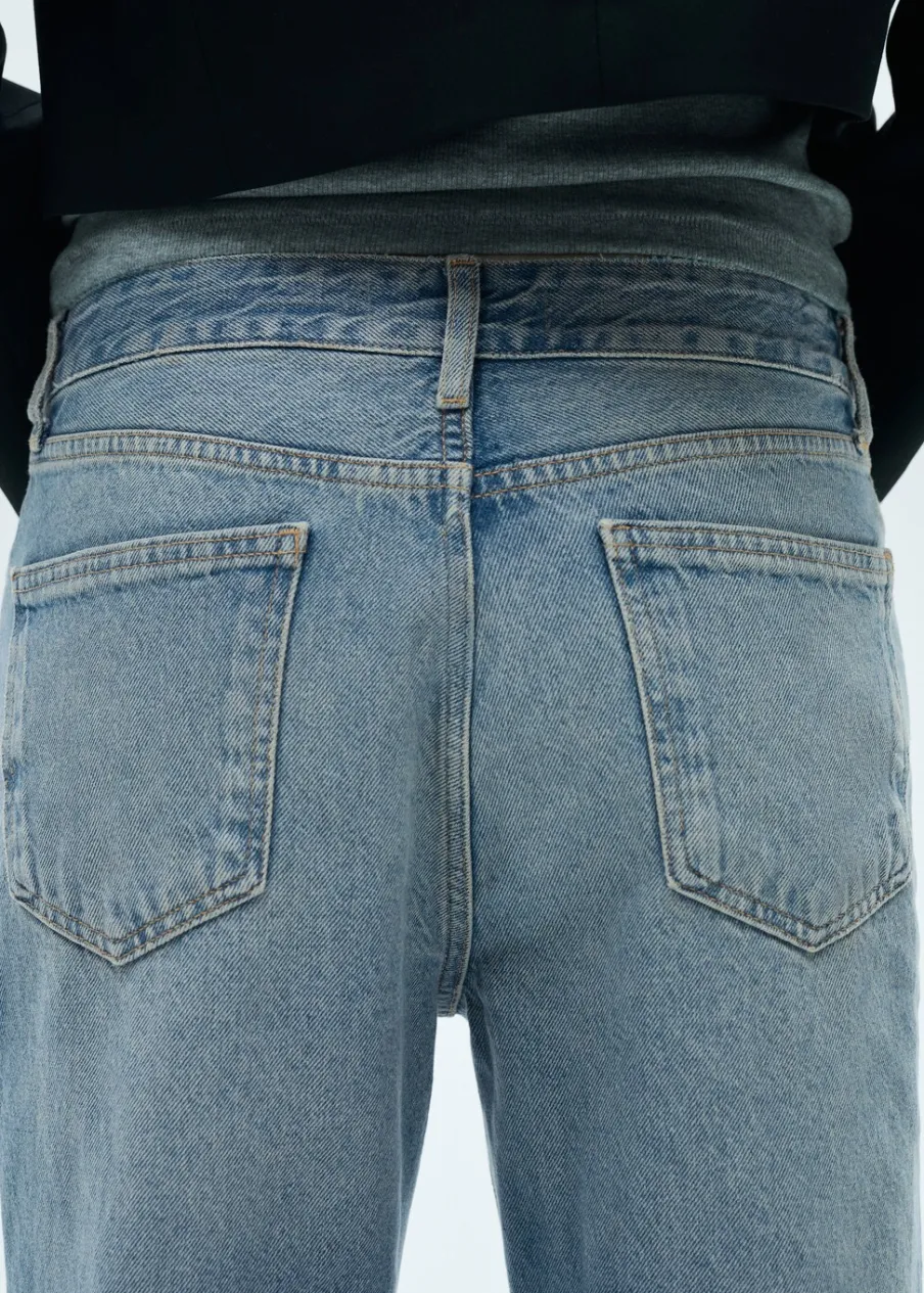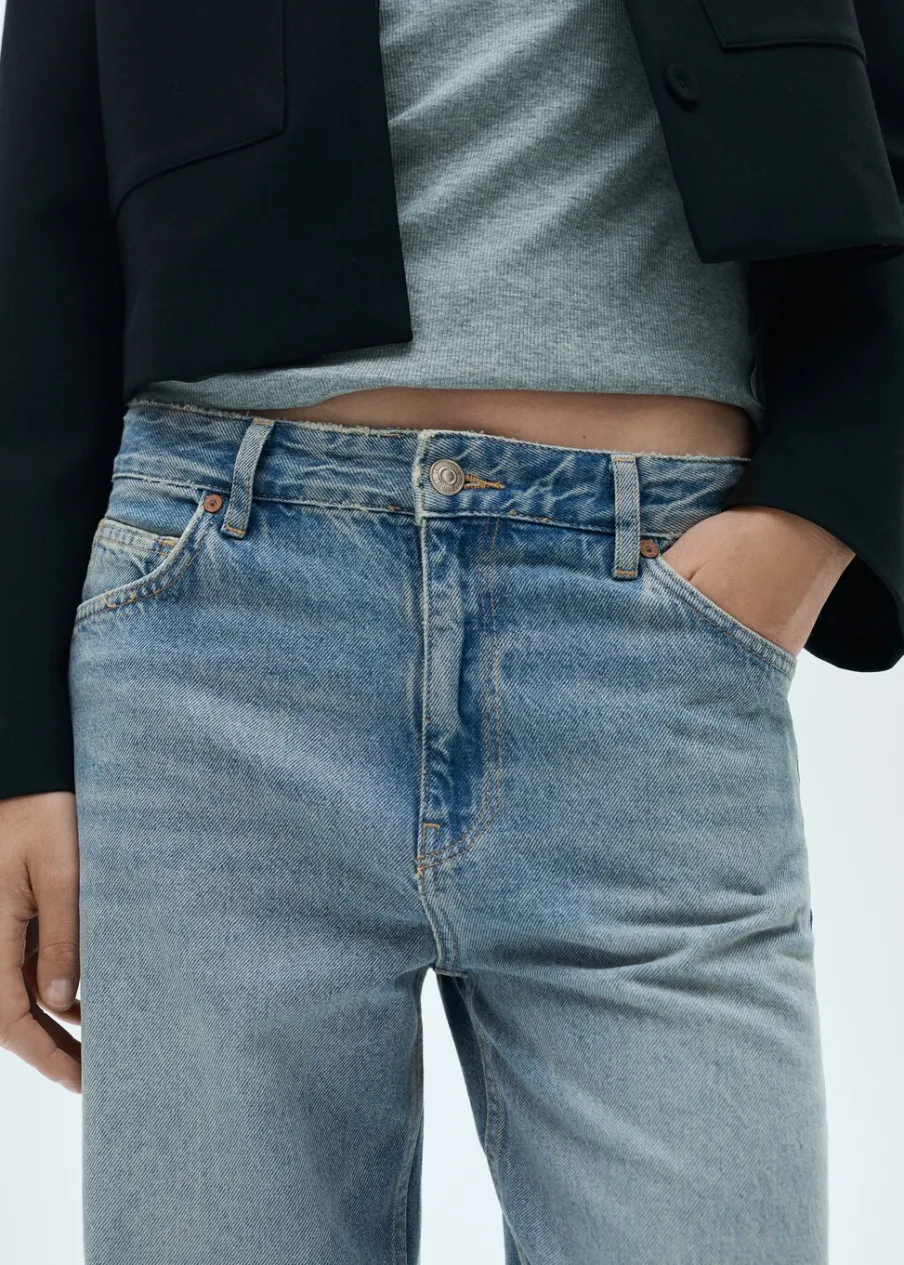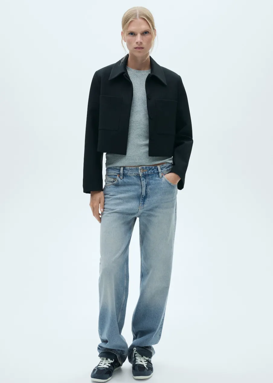 Tkanina bawełniana w dżinsowym stylu. Model długi. Model prosty. Pięć kieszeni. Szlufki. Zapięcie na zamek i guzik z przodu. Wyłącznie online. Modelka ma 178 cm wzrostu i nosi rozmiar S/36.