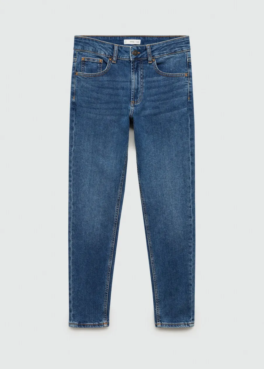 OpisTkanina bawełniana w dżinsowym stylu. Model prosty. Slim-fit. Pięć kieszeni. Zapięcie na suwak i guzik.
