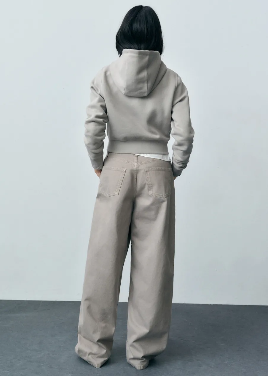 OpisTkanina bawełniana w dżinsowym stylu. Fason wideleg. Model długi. Średni stan. Szlufki. Pięć kieszeni. Zapięc…